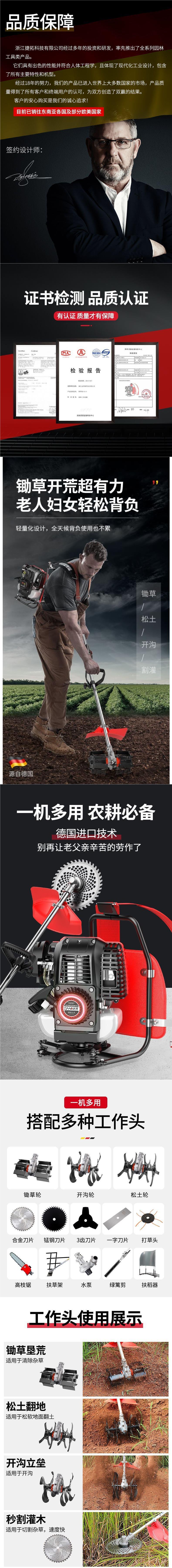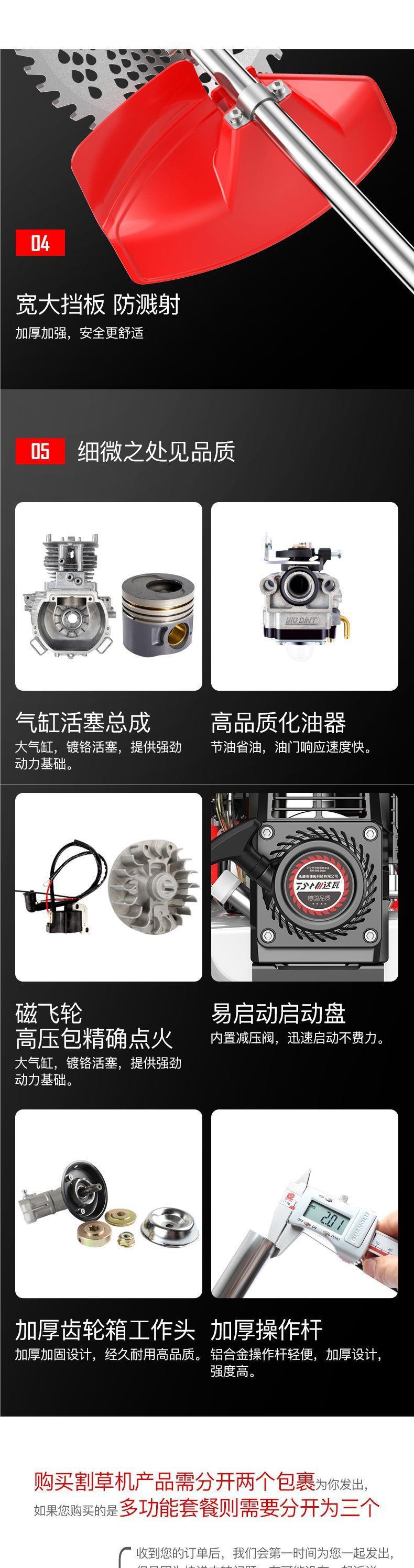 • 잔디 깎기 + 잡초 이 + 토양 풀기 + 하이 브랜치 톱 + 워터 펌프 + 이중 지지대