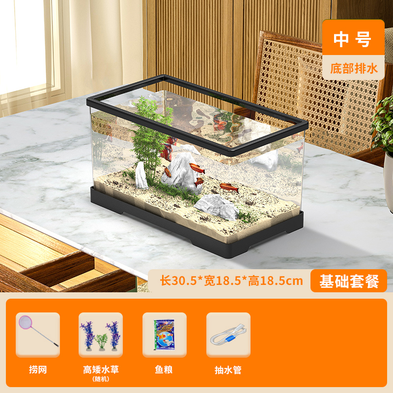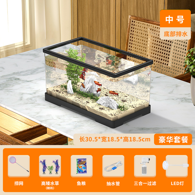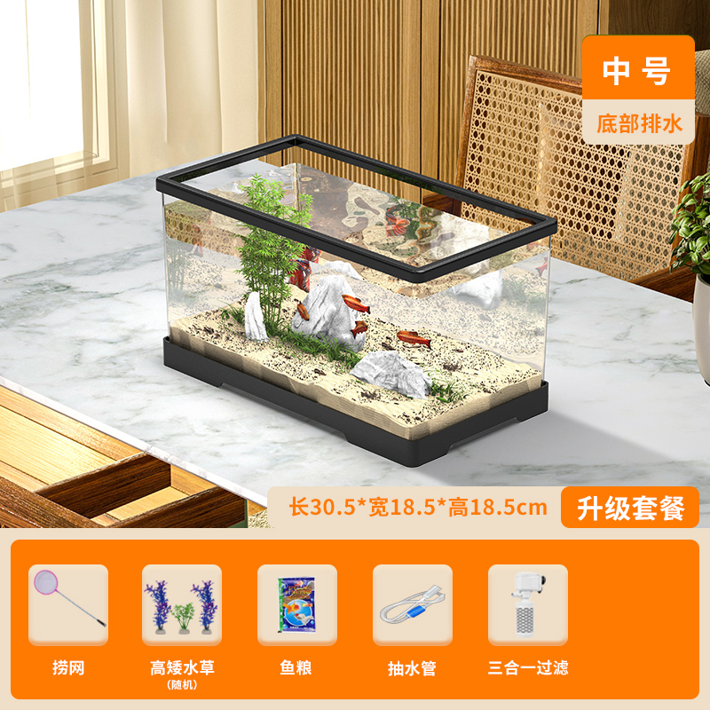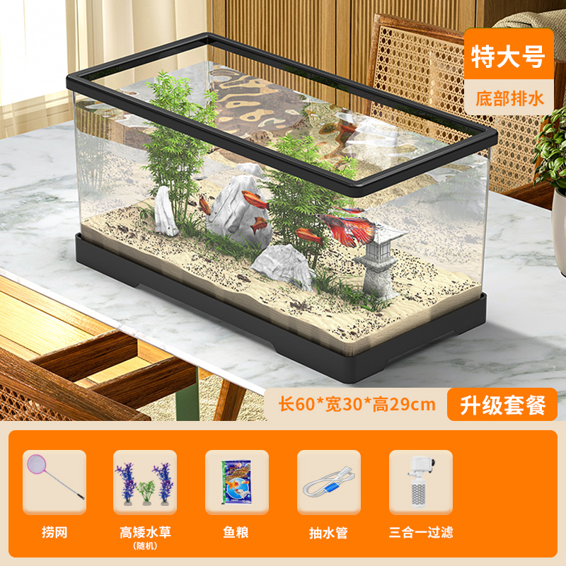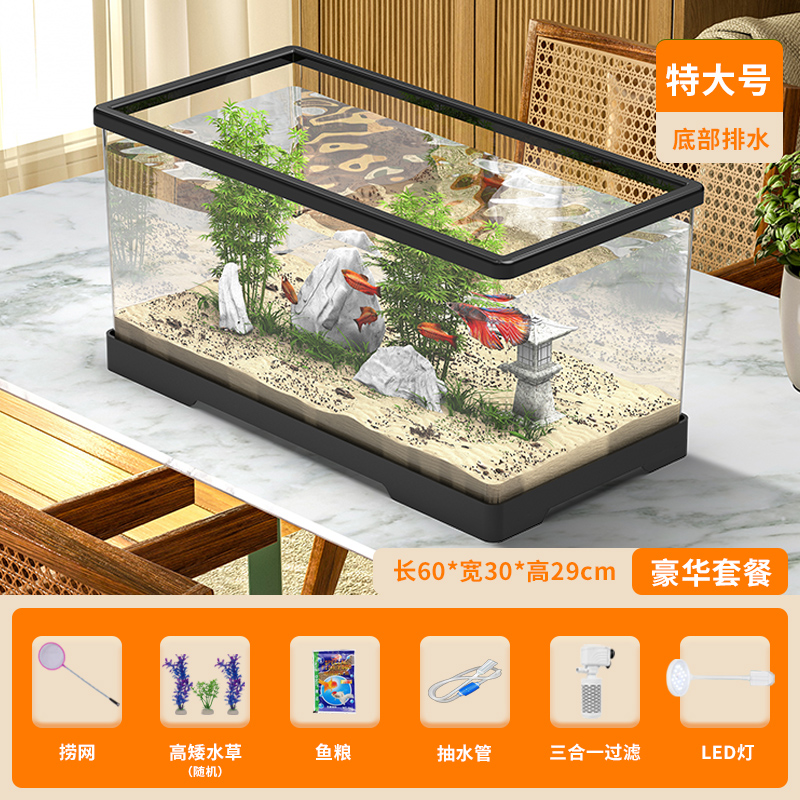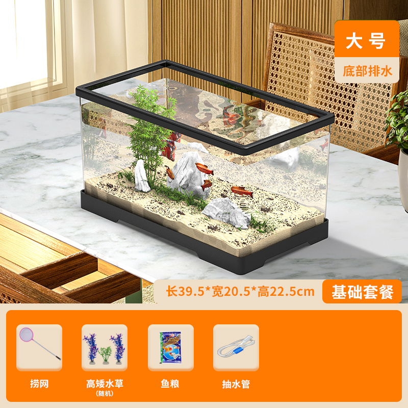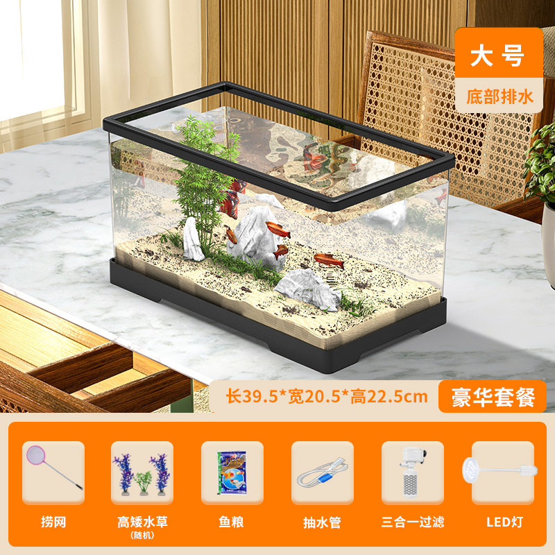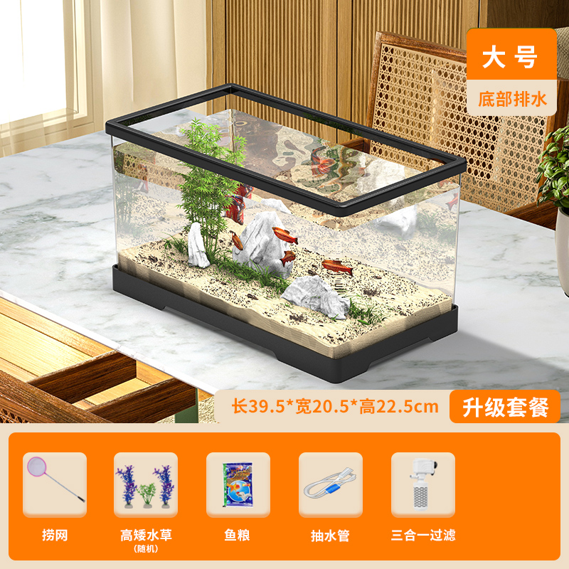 작은 물고기 탱크 가정용 데스크탑 거실 작은 거북이 탱크 TV 캐비닛 옆에 슈퍼 화이트 생태 필터 깊은 물 거북이 상승 상자스토어 가기