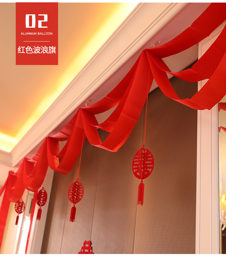 웨딩 룸 계단 장식 3 층 버건디 웨이브 플래그 설날 상점 쇼핑몰 장식 웨이브 플래그