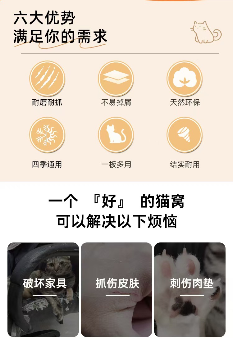 자네마 고양이 스크래치 보드 내구성 좋고 부스러기 없음 일체형 고양이 안락의자 스크래치 볼 전면 보호