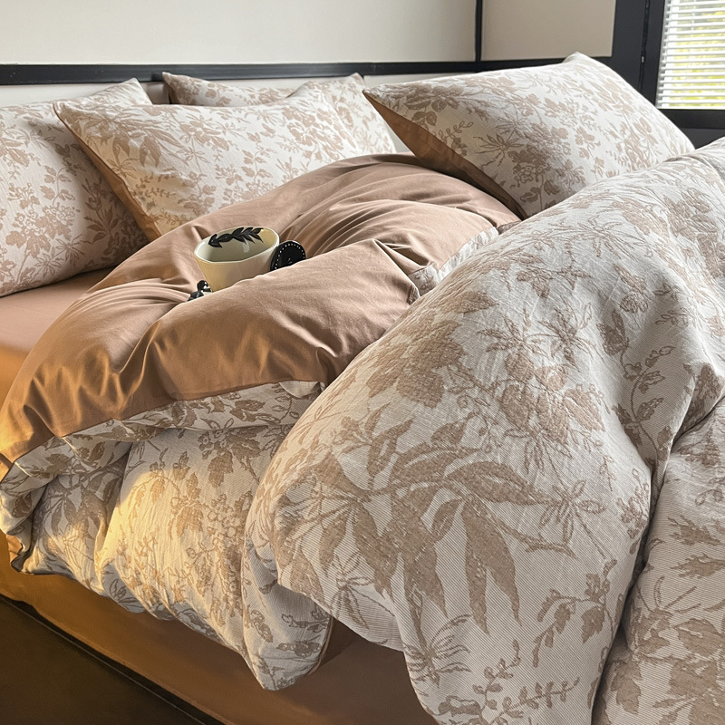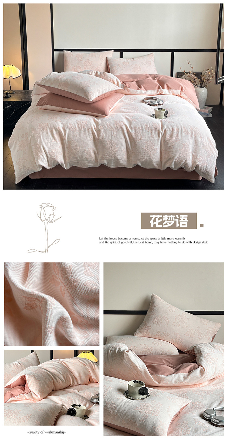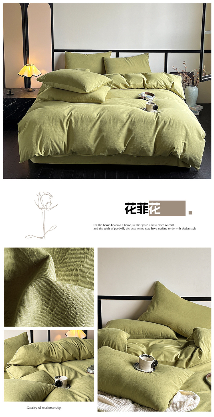 면 3 층 원사 침대 4 조각 세트 100 면 통기성 피부 친화적 인 퀼트 커버 4 계절 가정용 침대 시트스토어 가기