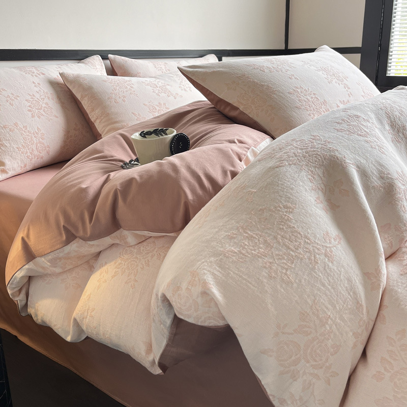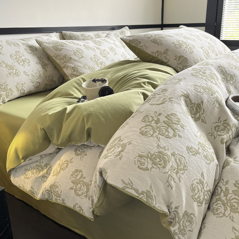 면 3 층 원사 침대 4 조각 세트 100 면 통기성 피부 친화적 인 퀼트 커버 4 계절 가정용 침대 시트