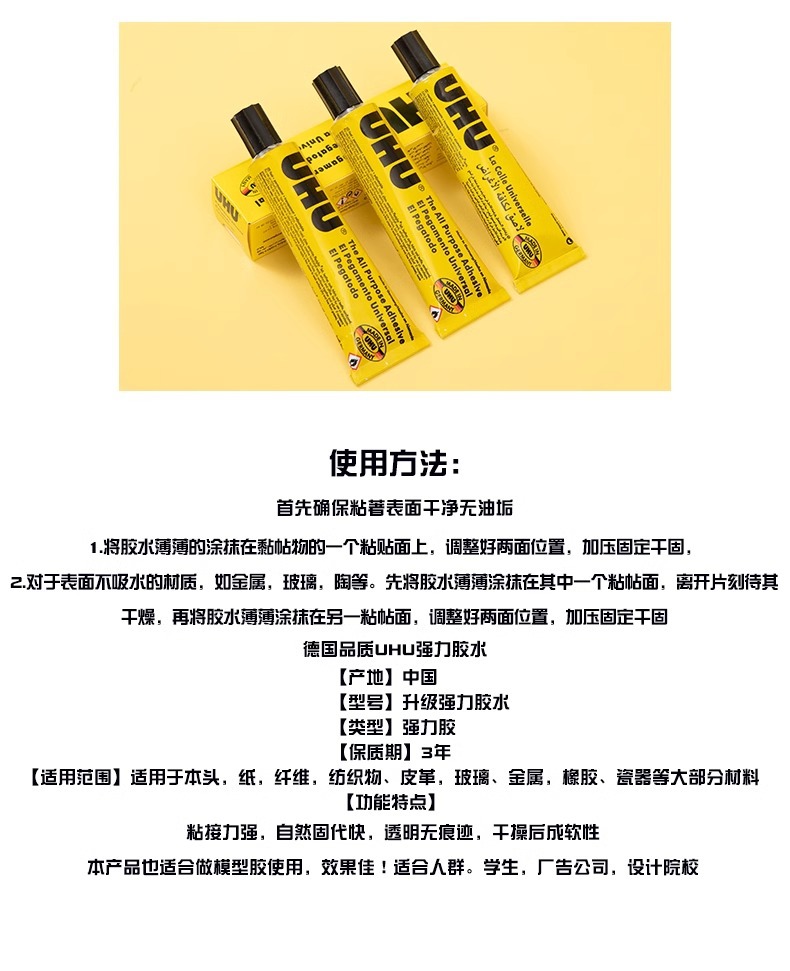 독일 업그레이드 UHU 강한 접착제 수제 투명 목재 범용 접착제 모델 유리 신발 수리 신발 접착제스토어 가기