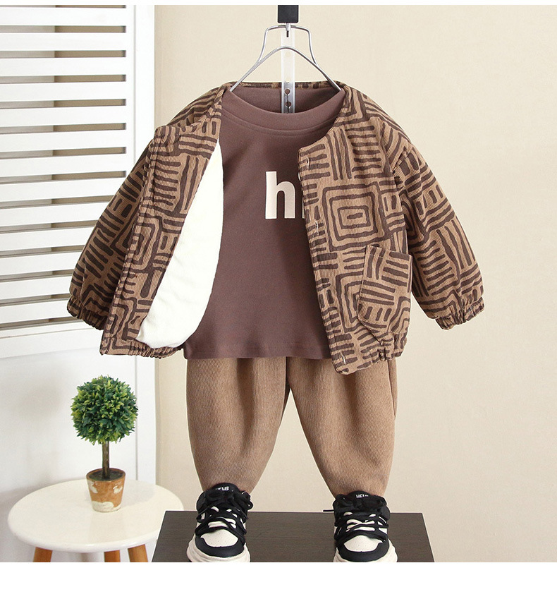 6830 소년 가을, 겨울 3 피스 양복 어린이 벨벳 두꺼운 재킷 2025 새로운 베이비 코듀로이 바지 유행스토어 가기