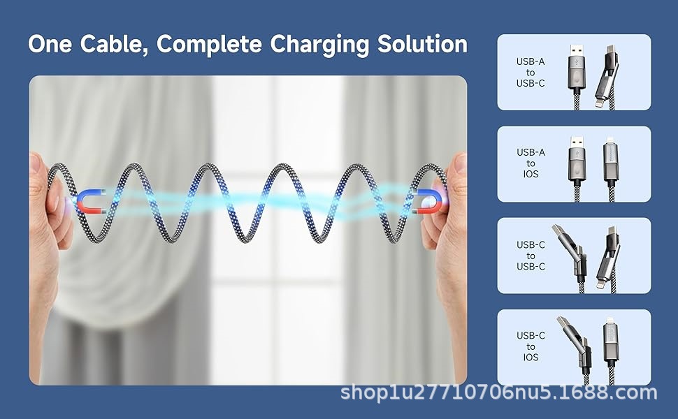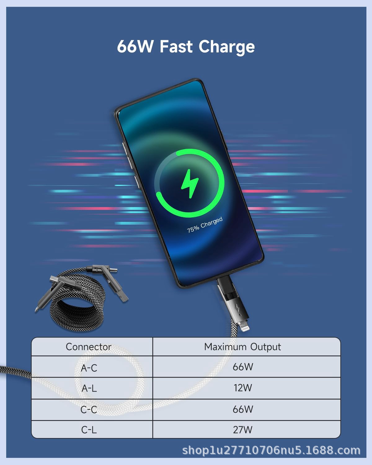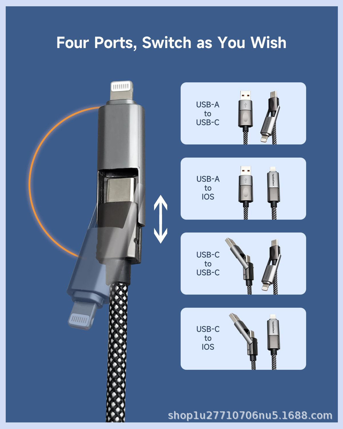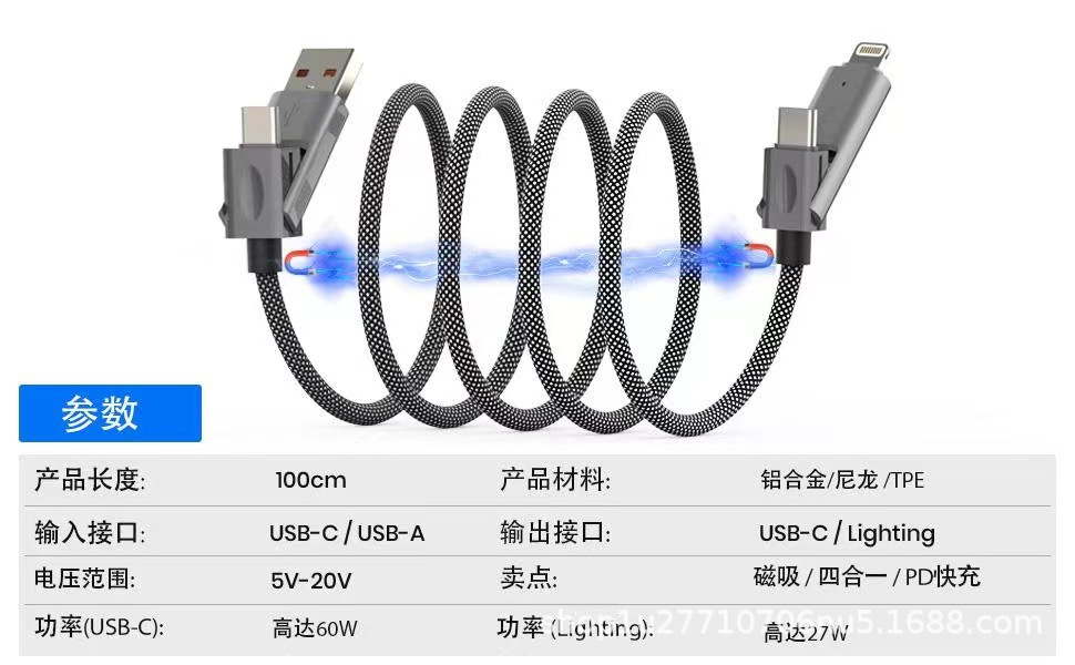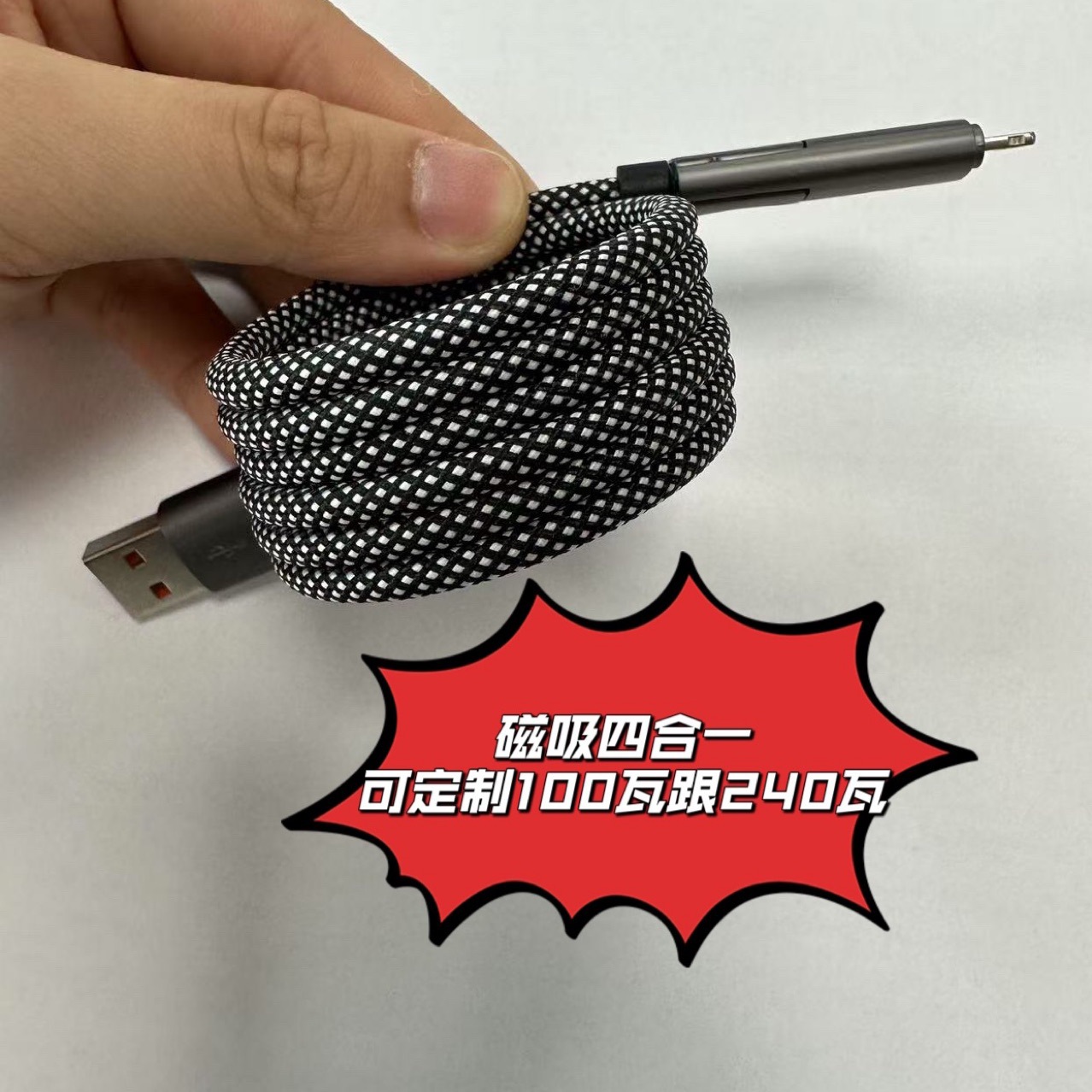 四合一锌合金便携式全磁吸双Type-C适用安卓苹果15PD快充电线