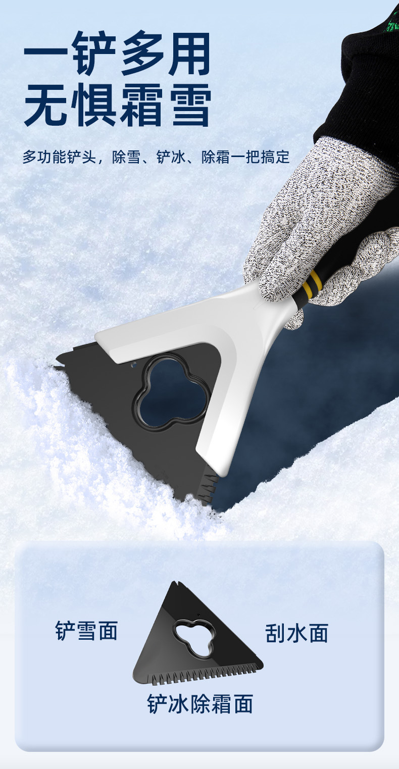 2.人体工学手柄 适用更省力(三重防滑设计,铲雪更省力)