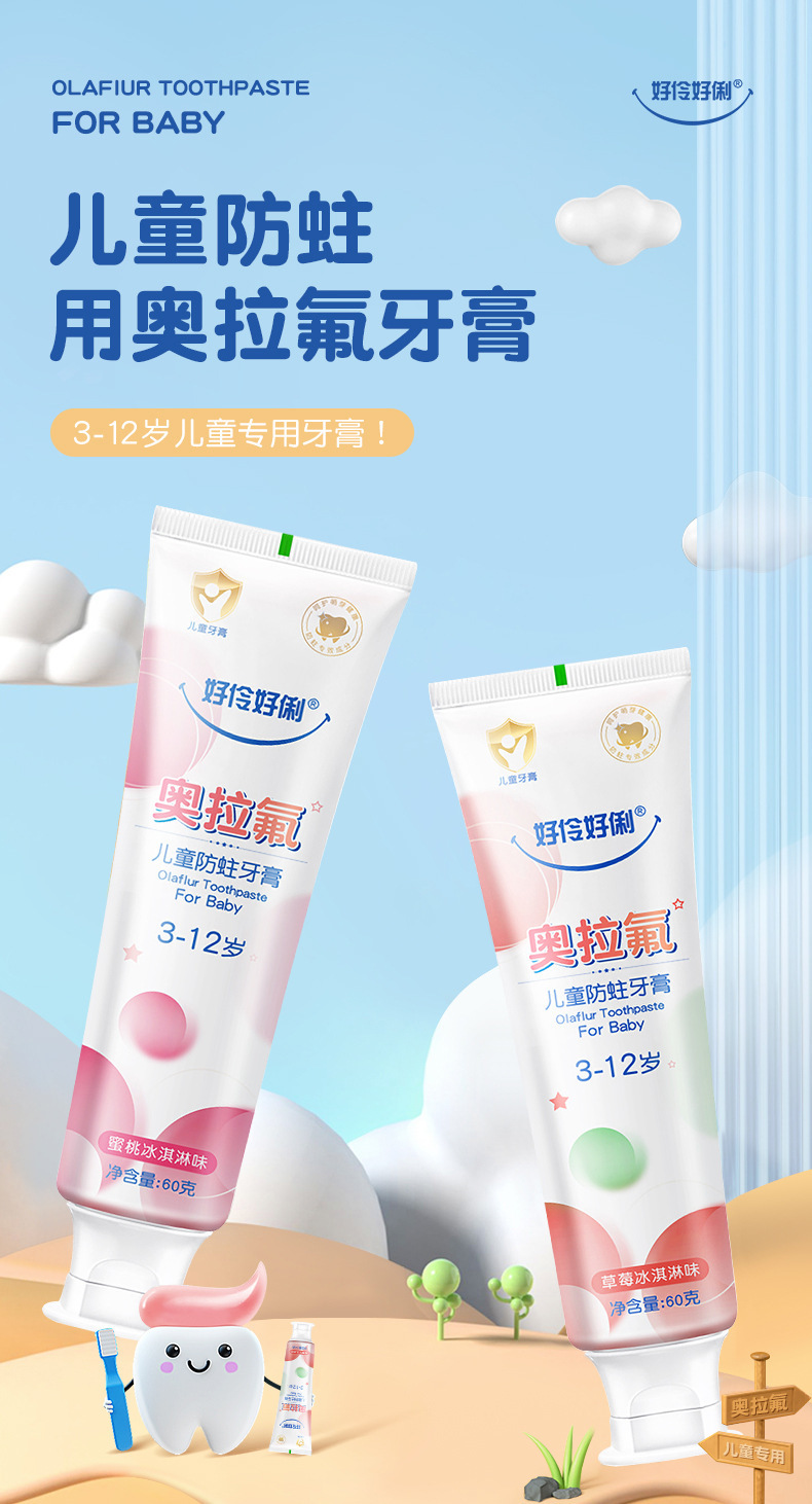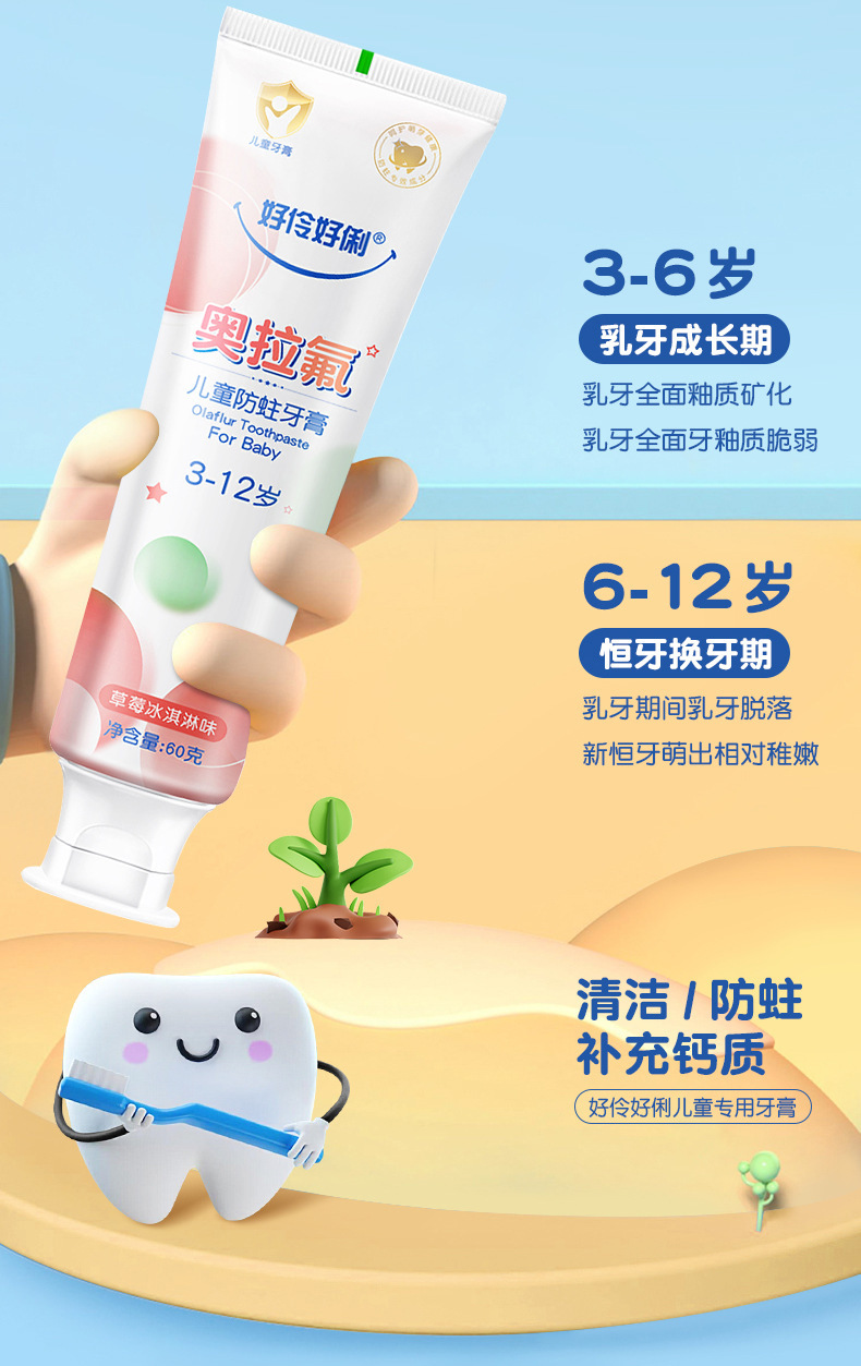 충치 방지 나방 불소 어린이 치약 3-6-12 세 불소 어린이 6-12 세 치아 변경 기간 도매