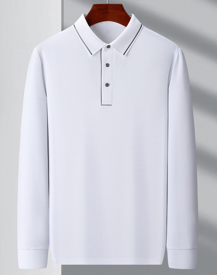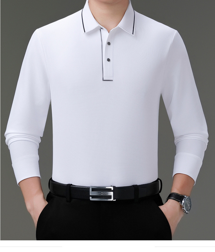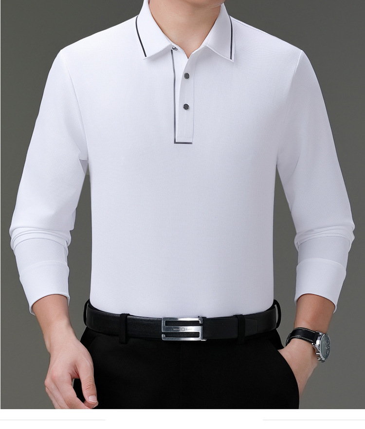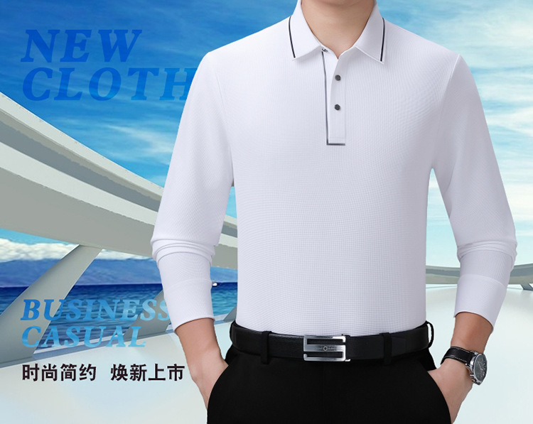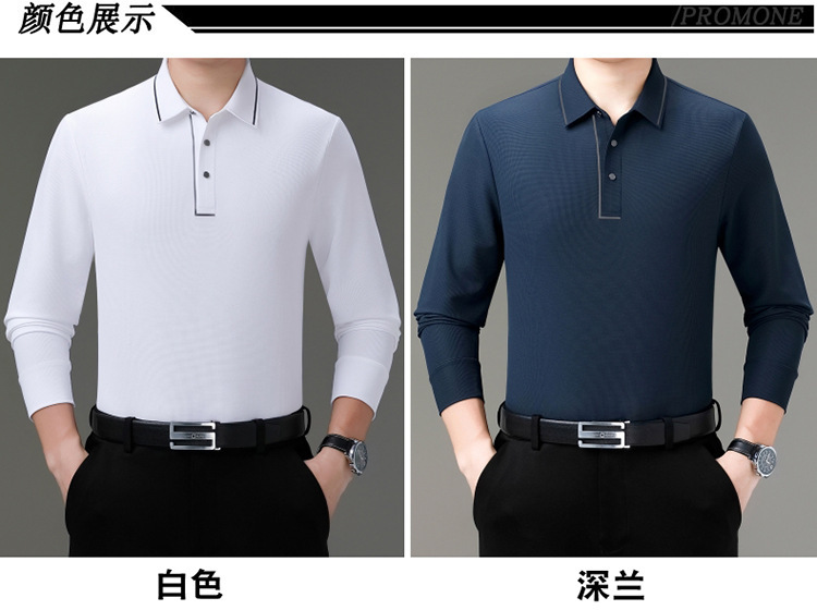정품 하이 엔드 남성용 긴팔 폴로 셔츠 티셔츠 봄과 가을 상품화 면화 비즈니스 캐주얼 옷깃 남성용 중년 아빠웨어