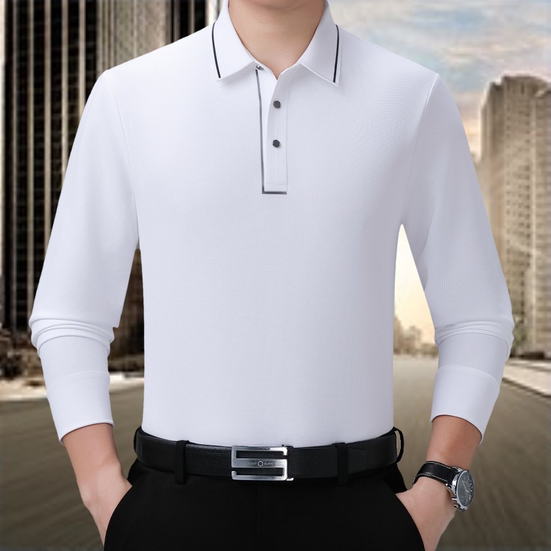 정품 하이 엔드 남성용 긴팔 폴로 셔츠 티셔츠 봄과 가을 상품화 면화 비즈니스 캐주얼 옷깃 남성용 중년 아빠웨어스토어 가기