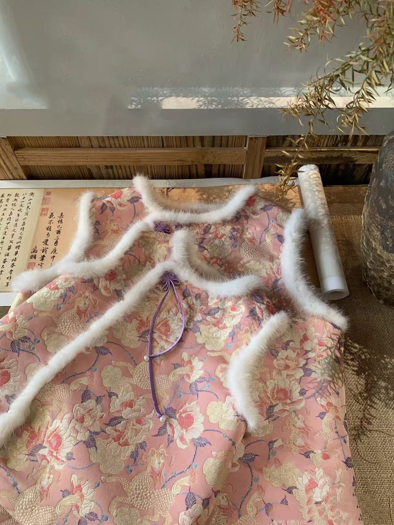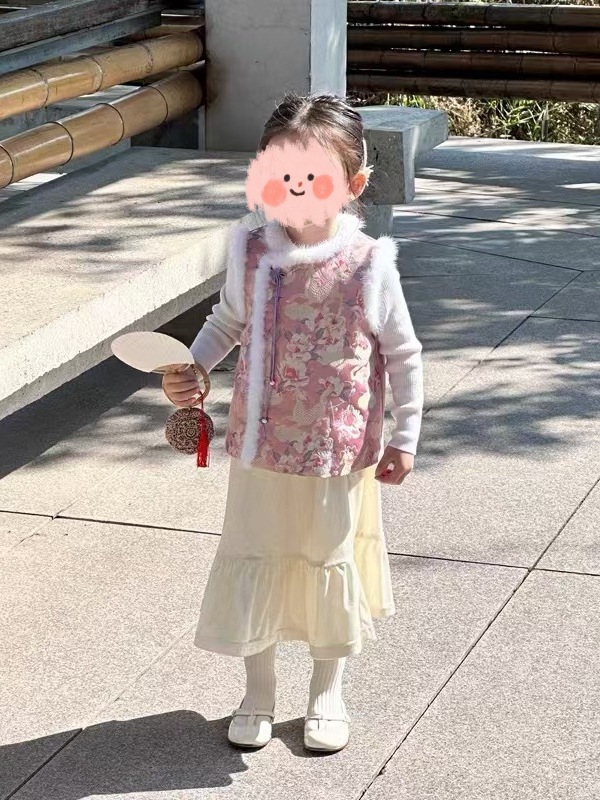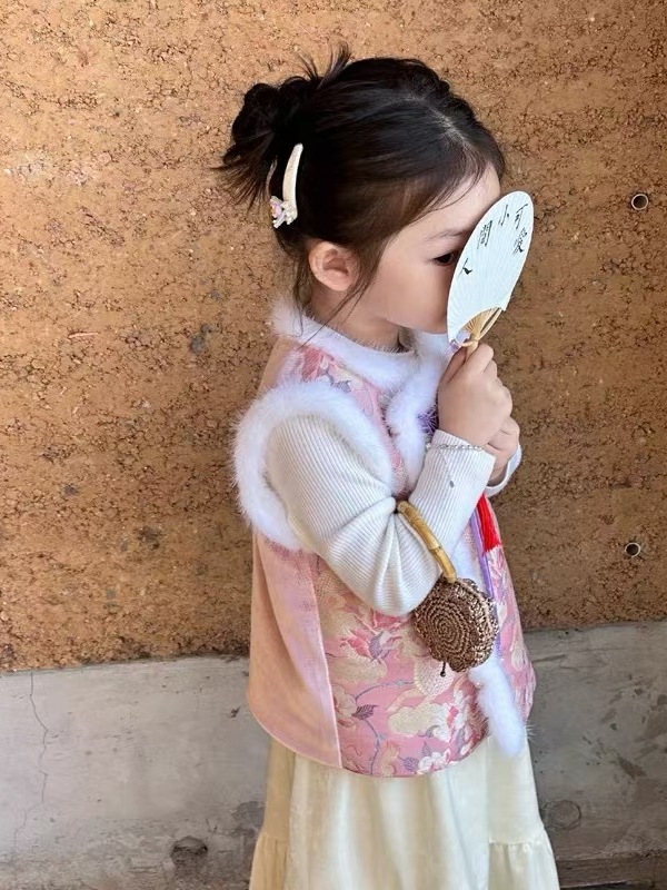 2025 가을 겨울 신상품 새로운 중국 스타일 여자아이 기린 모란 조끼 중국풍 밍크털 당나라 스타일 조끼스토어 가기