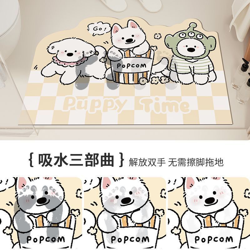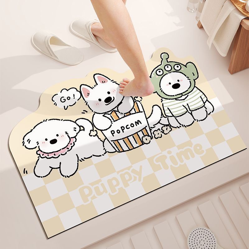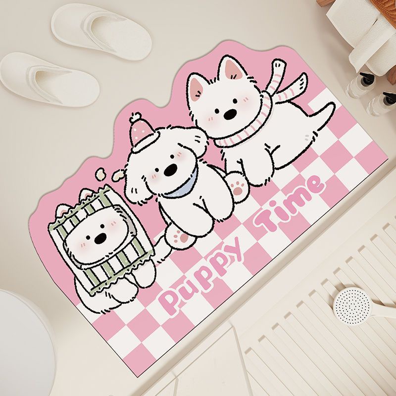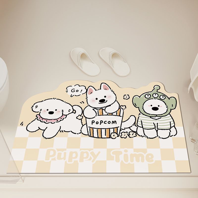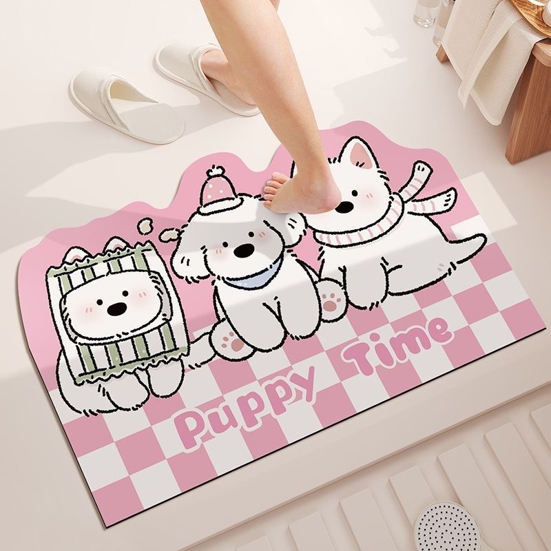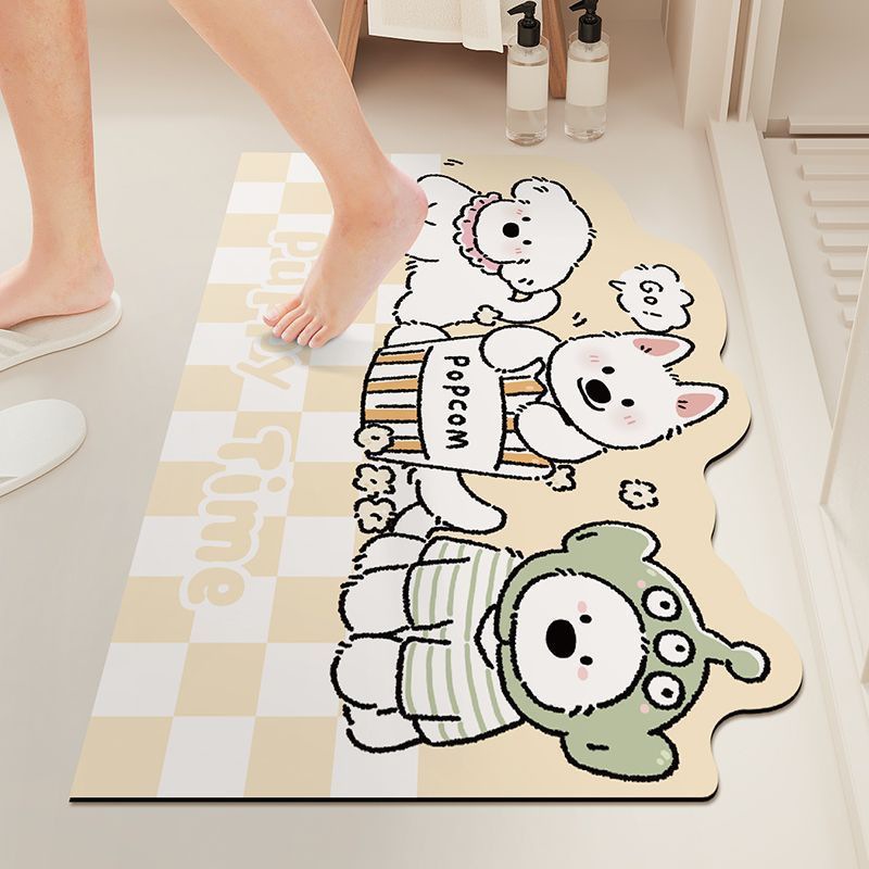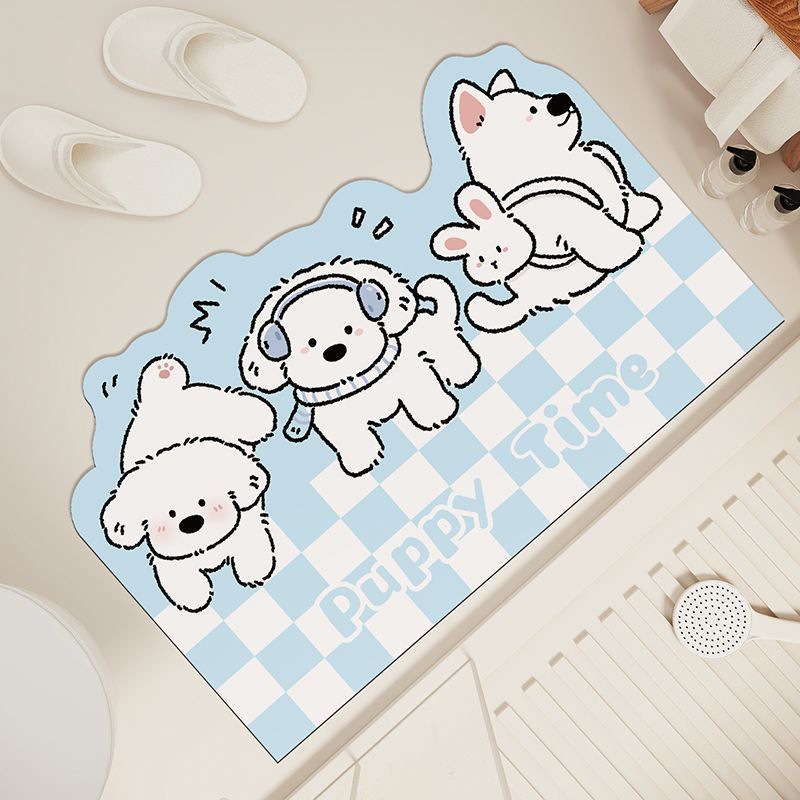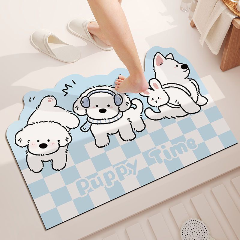 격자 무늬 개 욕실 빠른 건조 흡수성 바닥 매트 가정용 화장실 도어 매트 크림 스타일 장식 미끄럼 방지 발 매트