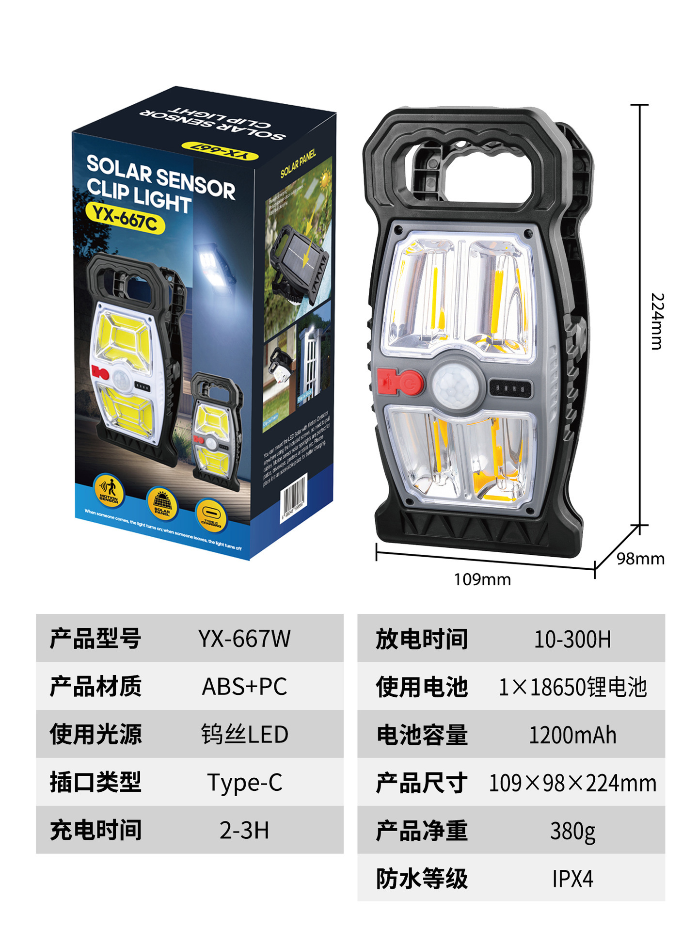 국경 새로운 태양 유도 벽 램프 가로등 클립 램프 야외 정원 램프 캠핑 충전식 에너지 절약 램프