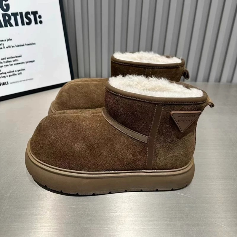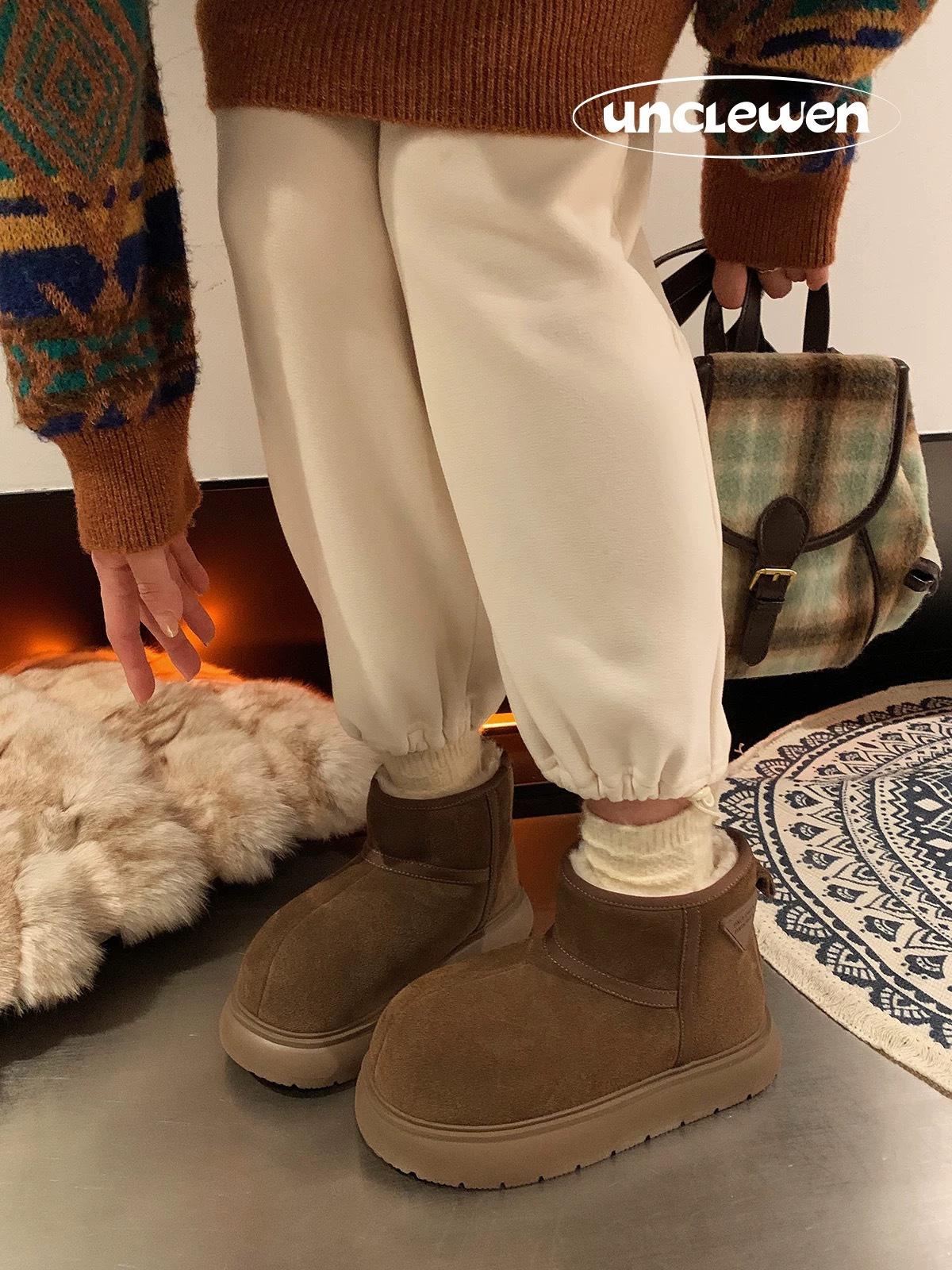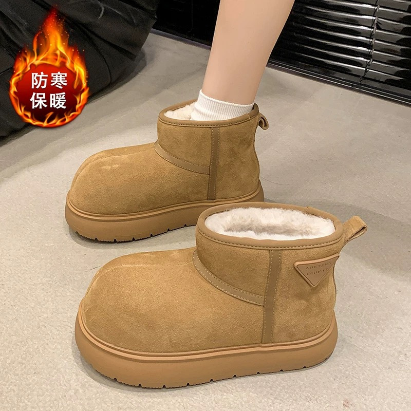 큰 머리 추악한 귀여운 눈 부츠 두꺼운 바닥 기모 코튼 신발 여성의 2024 겨울 새로운 짧은 부츠 유행 내부 높이 부츠
