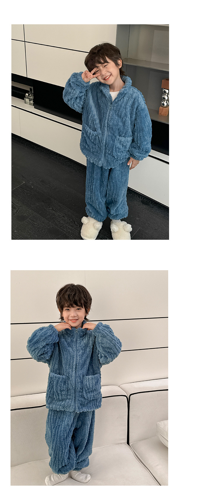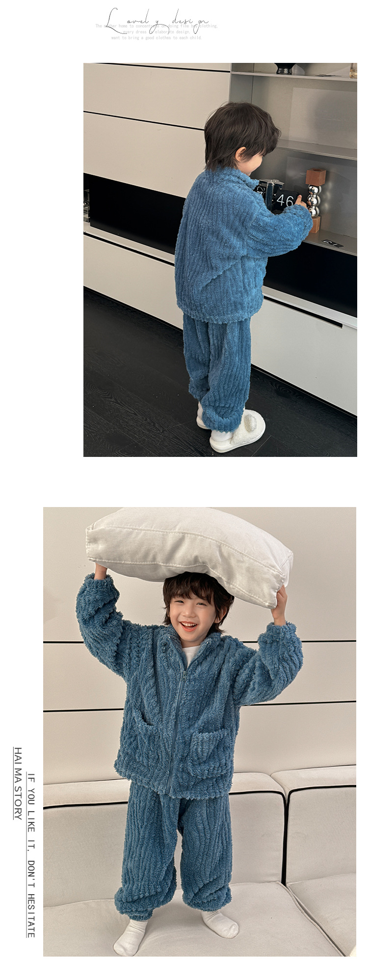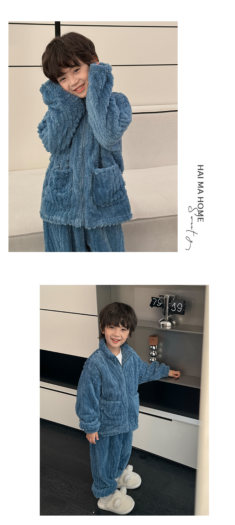 해마가족 남아 잠옷 상하의 세트 2025 겨울 신상 아동 홈웨어 세트 코랄벨벳 두꺼운 소재스토어 가기