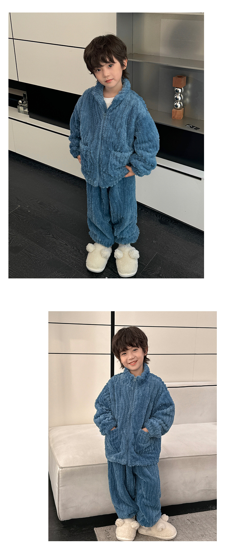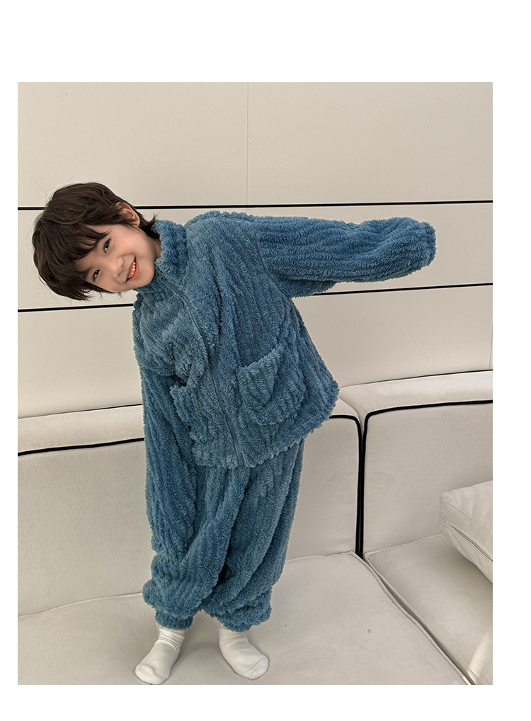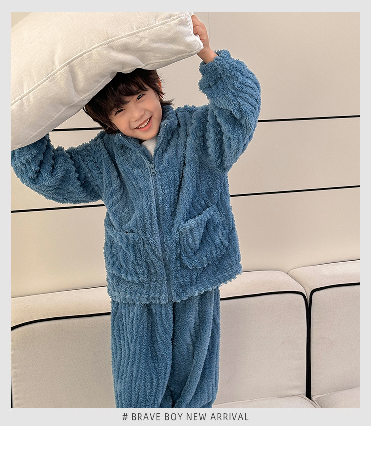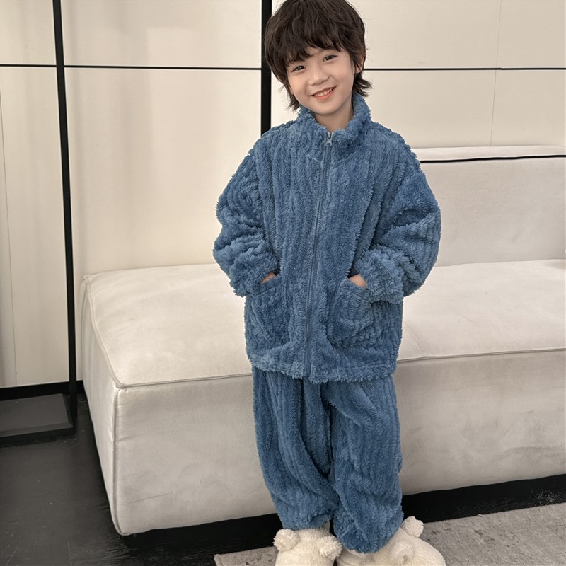 해마가족 남아 잠옷 상하의 세트 2025 겨울 신상 아동 홈웨어 세트 코랄벨벳 두꺼운 소재