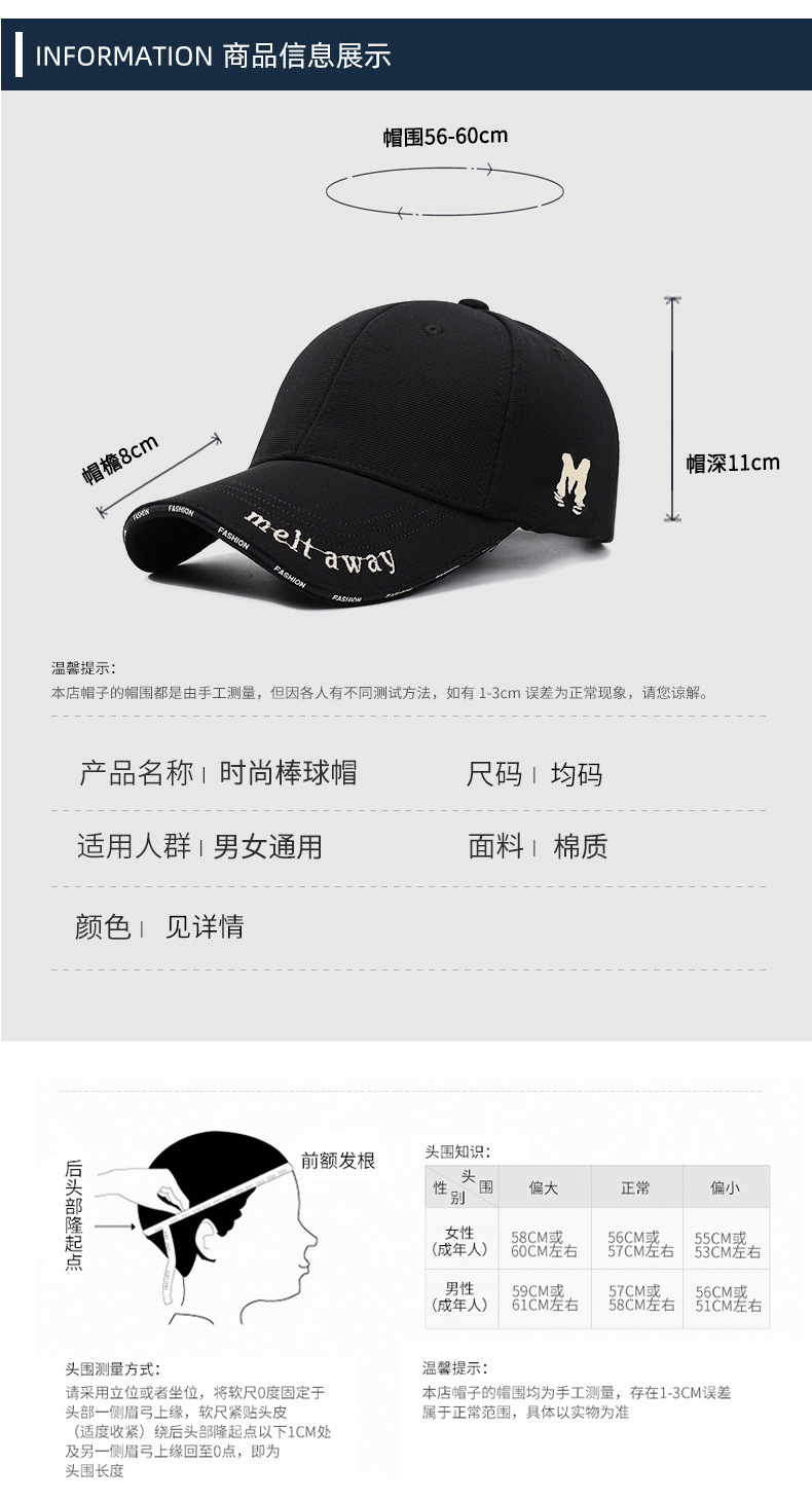 새로운 수 놓은 M 편지 모자 통기성 야구 모자 야외 스포츠 모자 패션 남녀 가을 겨울 태양 모자