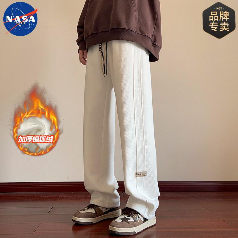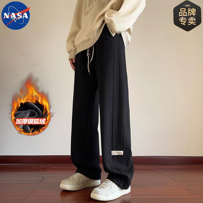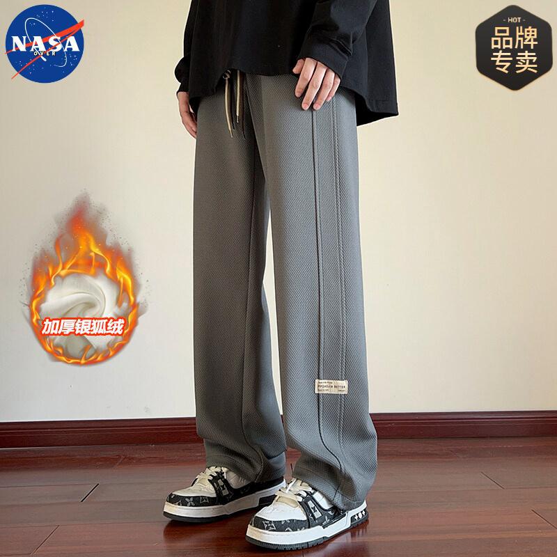 NASA 브랜드 바지 남자의 2024 새로운 가을과 겨울 따뜻한 스트레이트 캐주얼 느슨한 복용량 플러스 사이즈 넓은 다리 바지스토어 가기