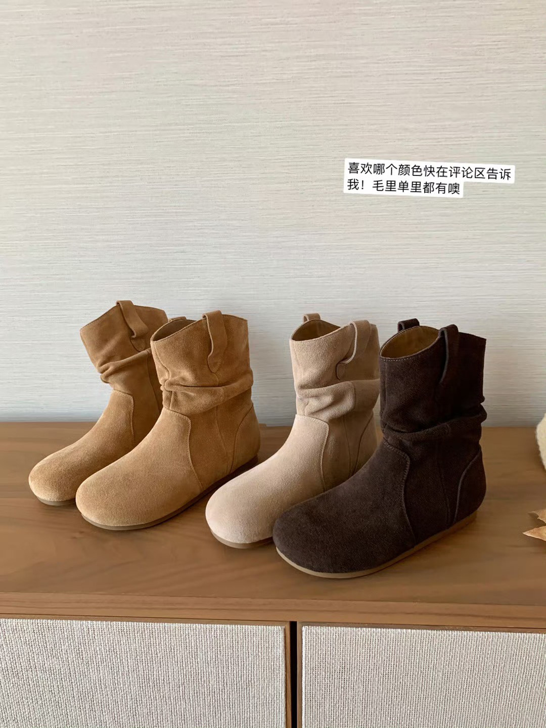 Su Yinyin 같은 한국 소녀 ~ 아기 머리 강화 Cowhide Birkken 기모 힙 쇼트 부츠 여성용 마틴 부츠스토어 가기
