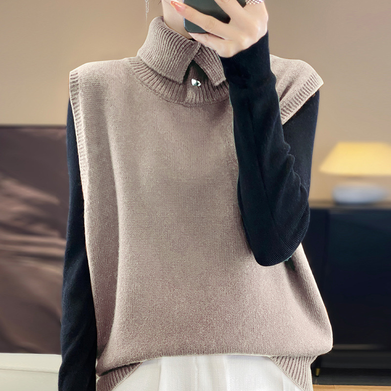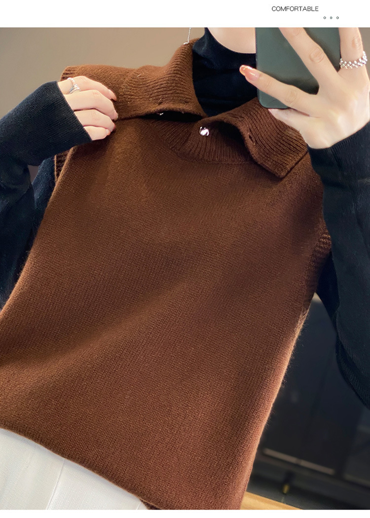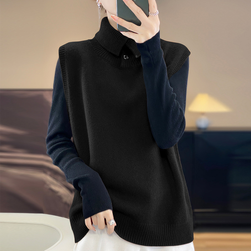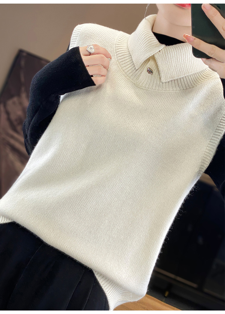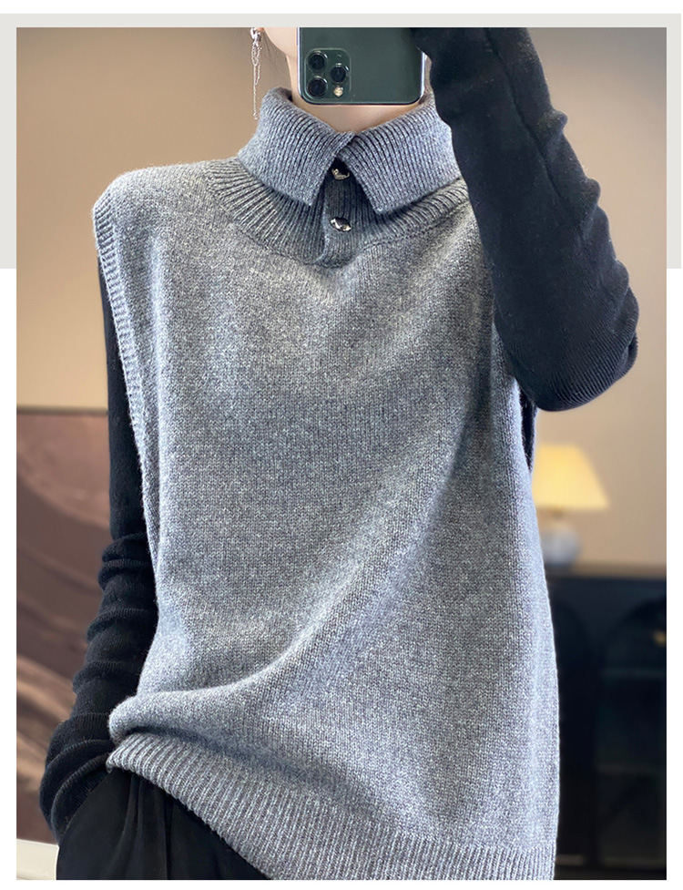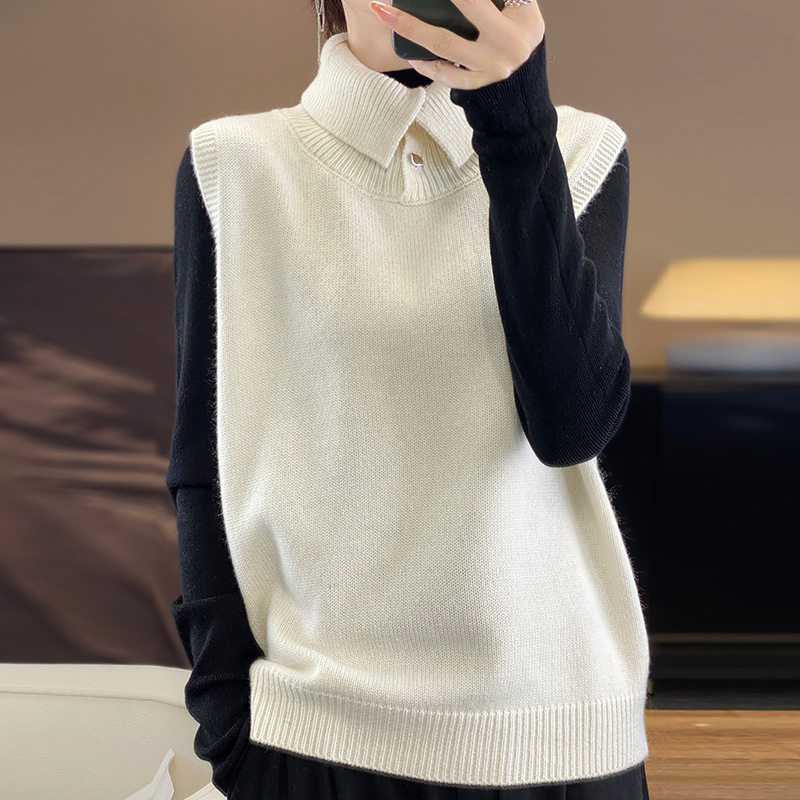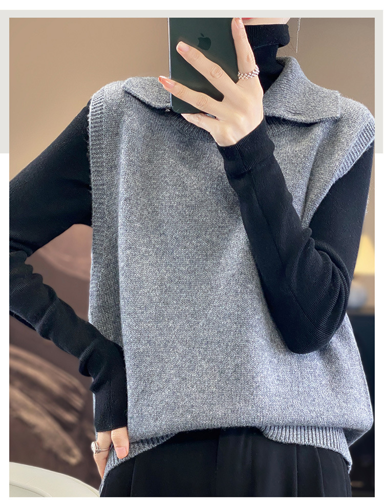 한국 스타일 루즈핏 레이어드 민소매 스웨터 디자인 조끼 카라 니트 조끼 여성용 다용도 단색스토어 가기