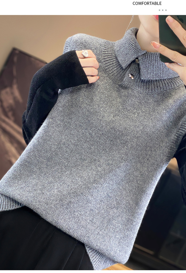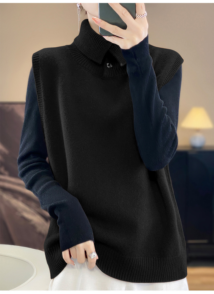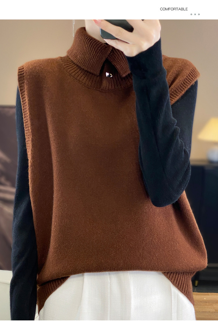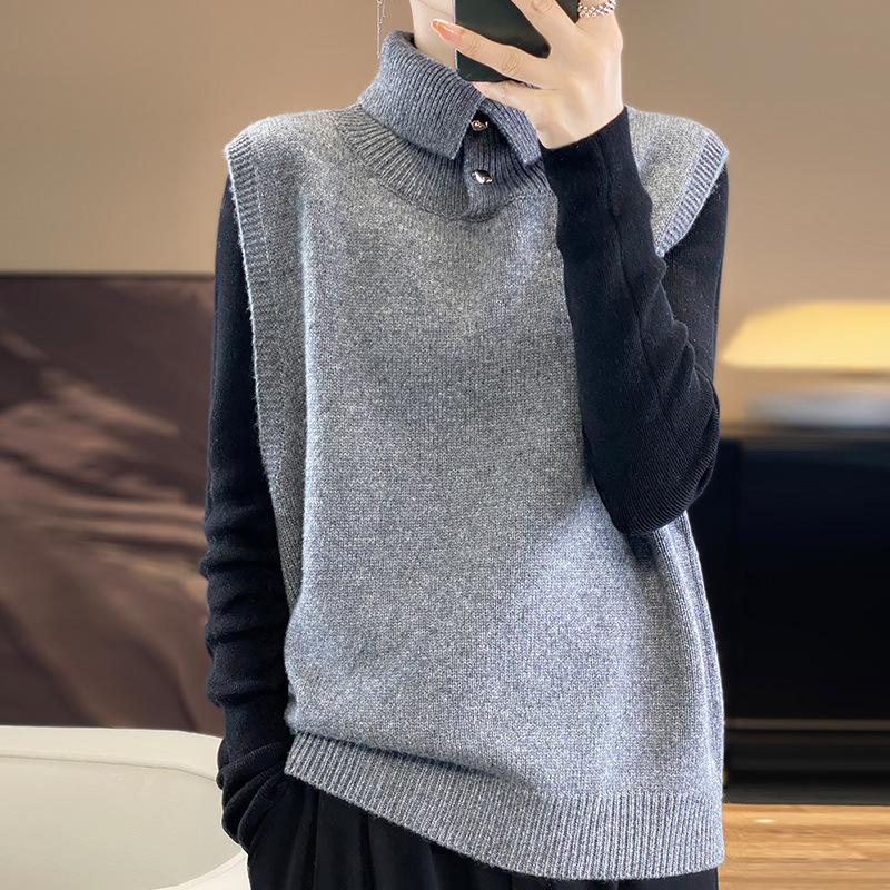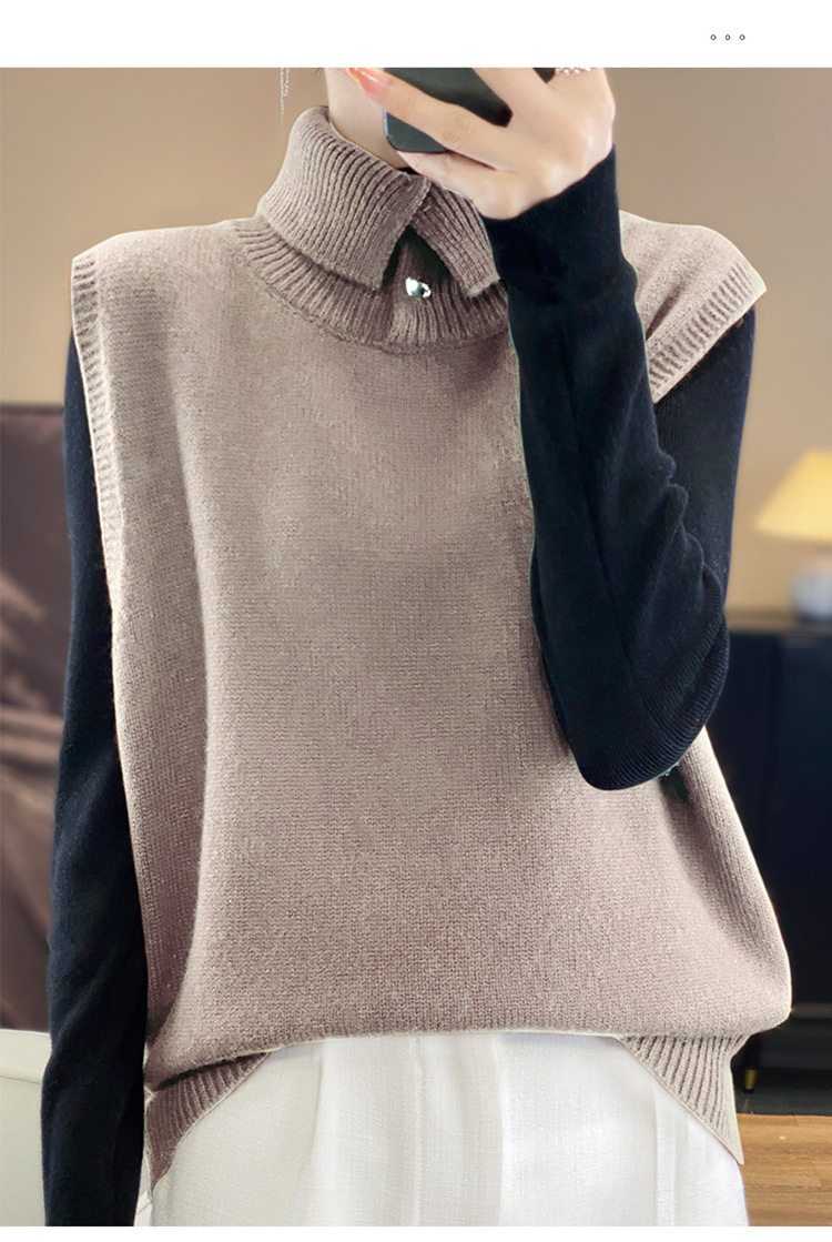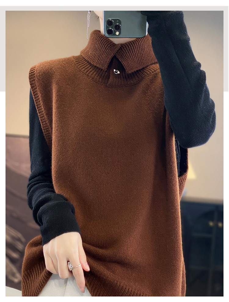한국 스타일 루즈핏 레이어드 민소매 스웨터 디자인 조끼 카라 니트 조끼 여성용 다용도 단색스토어 가기
