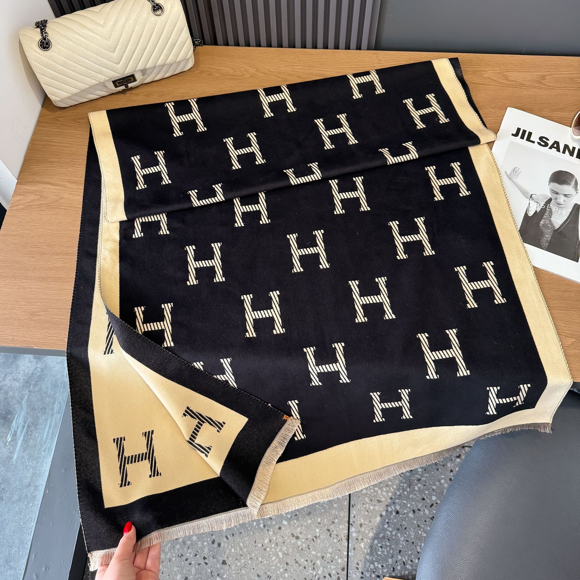 겨울 새 올매치 모조 캐시미어 H 레터 스카프 여자 2024 하이 엔드 외장형 두꺼운 따뜻한 한랭 목도리스토어 가기