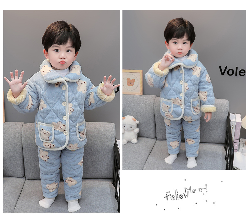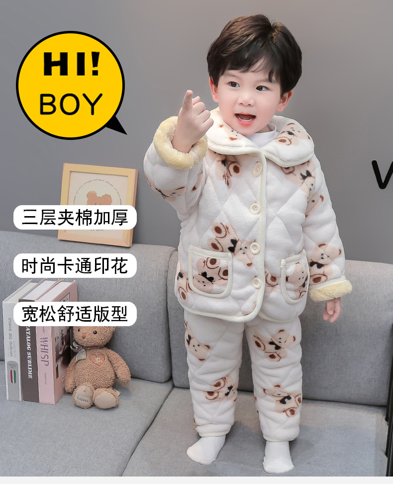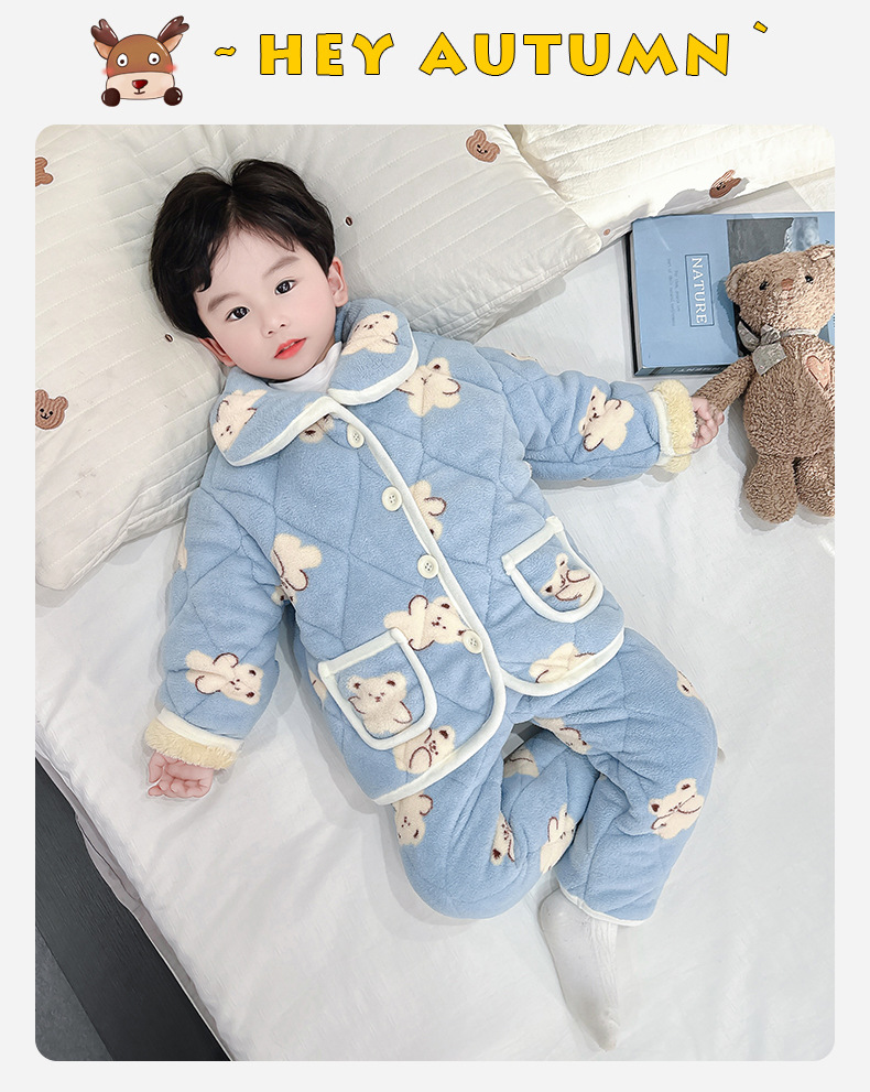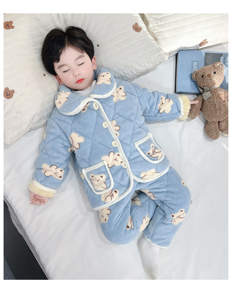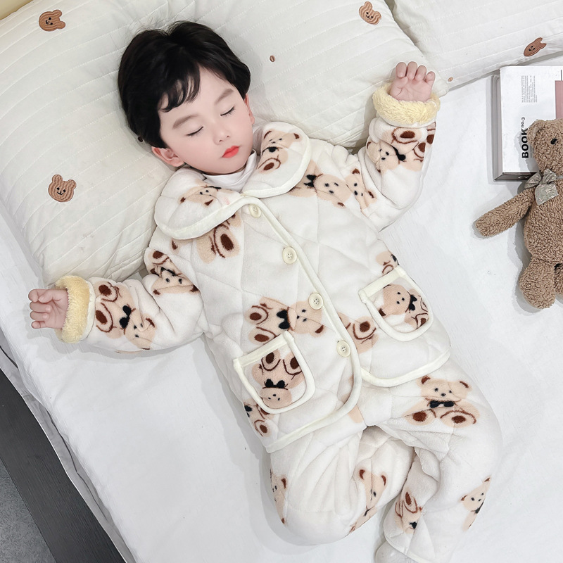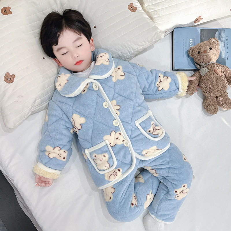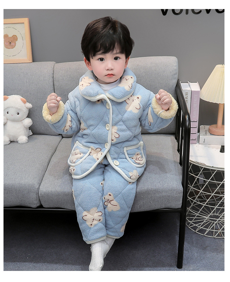 2025년 신형 3중 누빔 남아 겨울용 두꺼운 잠옷 세트, 플리스 안감, 중소 아동용 홈웨어 세트스토어 가기