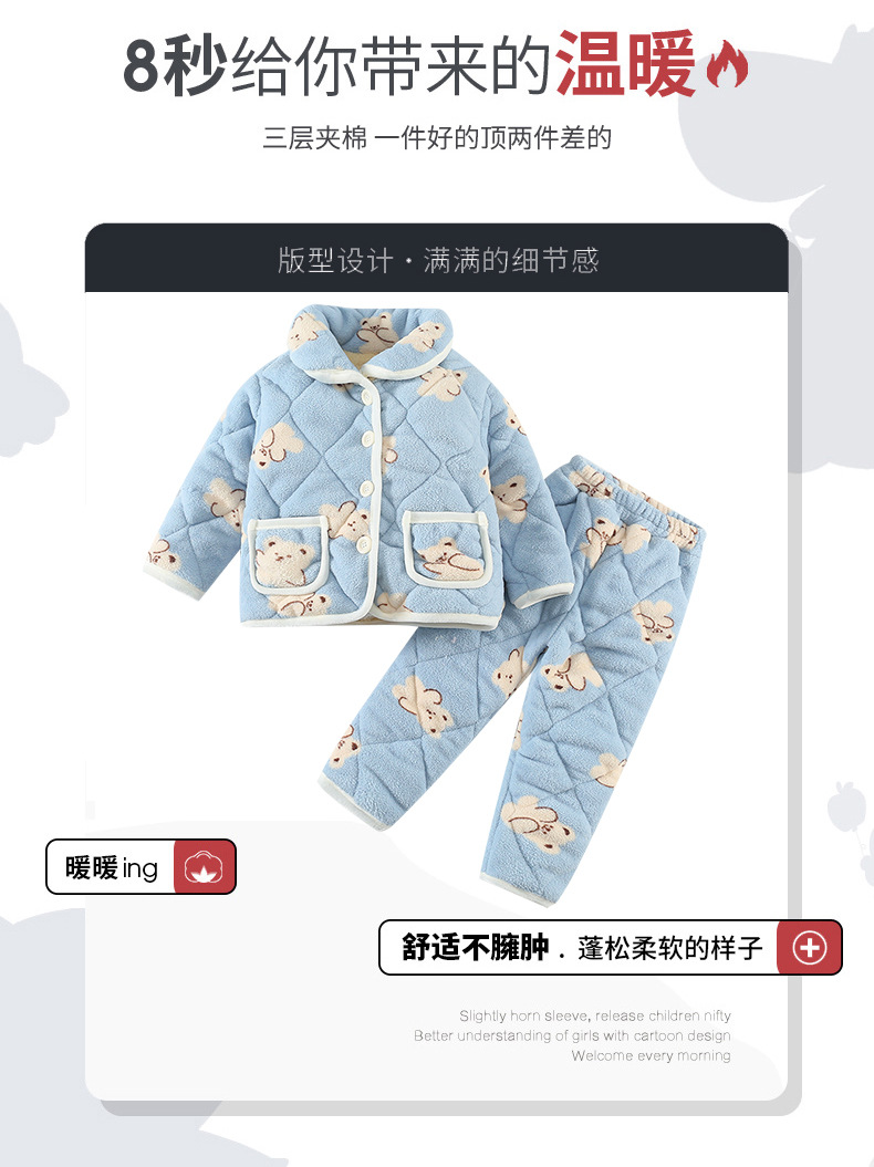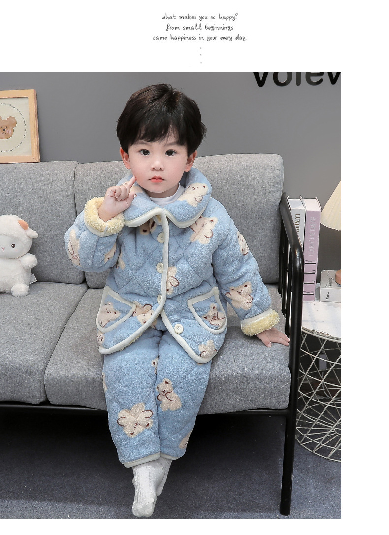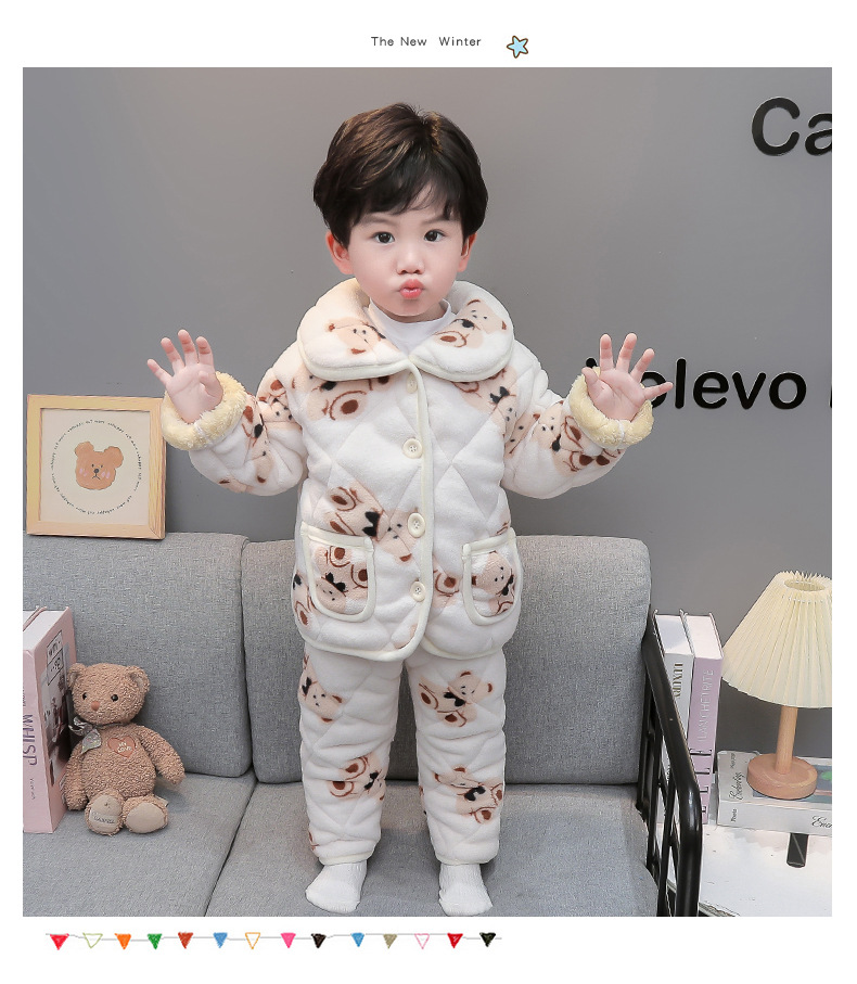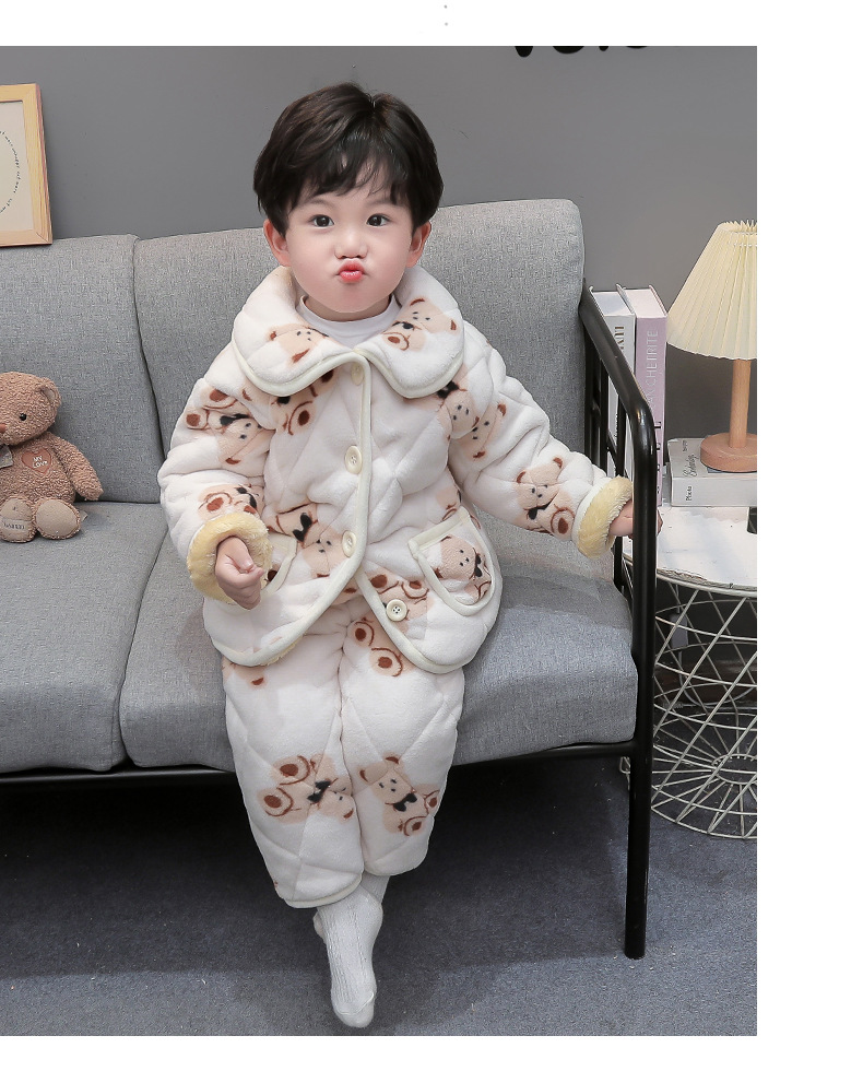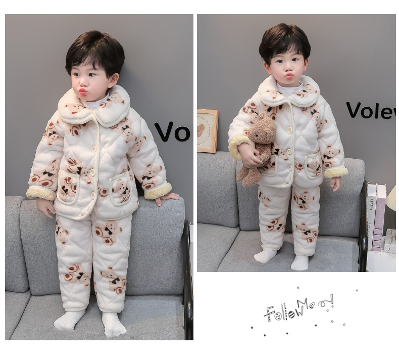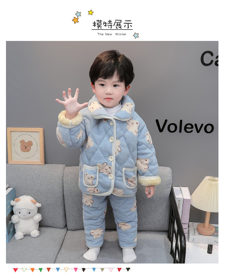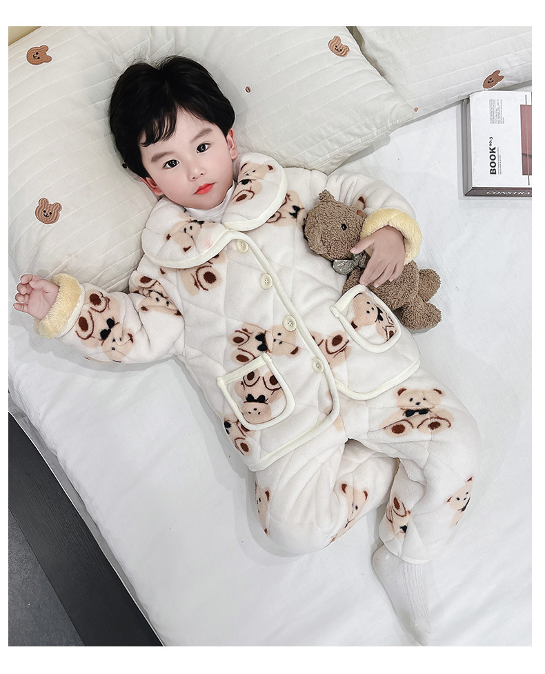 2025년 신형 3중 누빔 남아 겨울용 두꺼운 잠옷 세트, 플리스 안감, 중소 아동용 홈웨어 세트스토어 가기