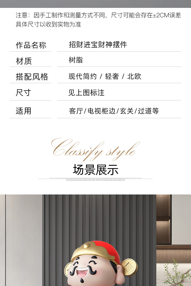 부의 신 대형 층 오프닝 선물 장식품 거실 입구 홈 장식 쇼핑몰 전시관 조각 아름다운 첸