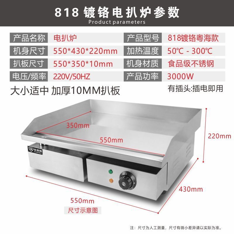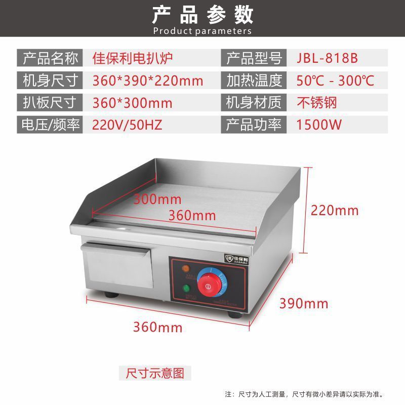 Jiabaoli 가스 핸드 케이크 스크래치 기계 상업용 스톨 장비 증가 가스 철 플레이트 다기능 크롬 도금 전기 그릴로스토어 가기