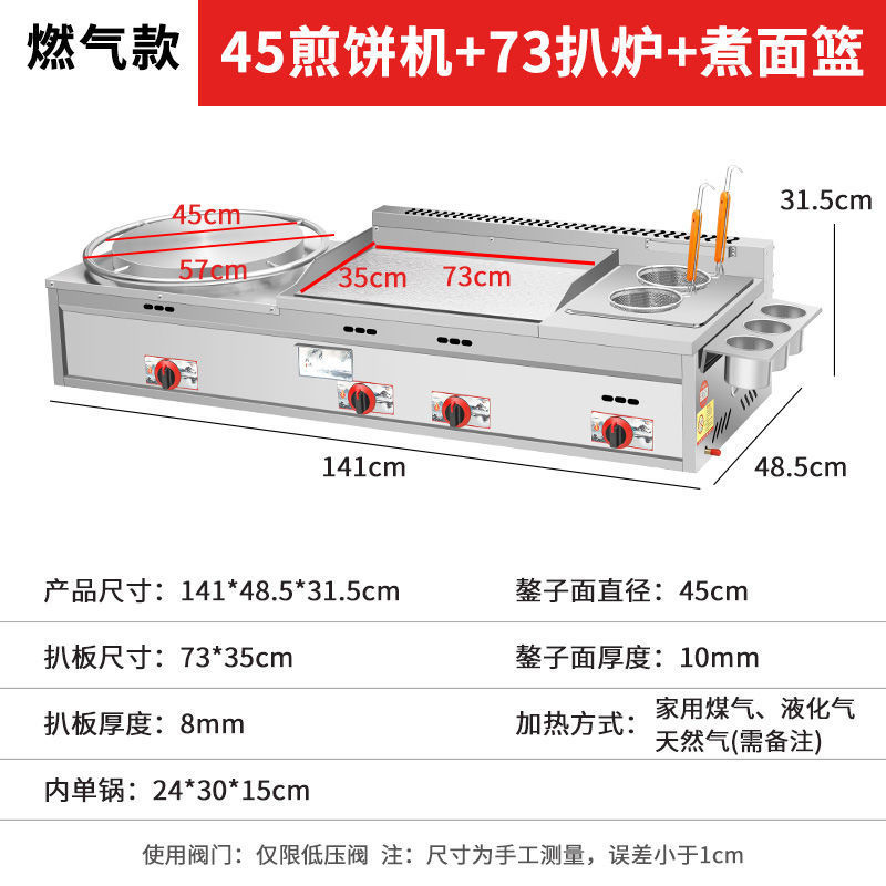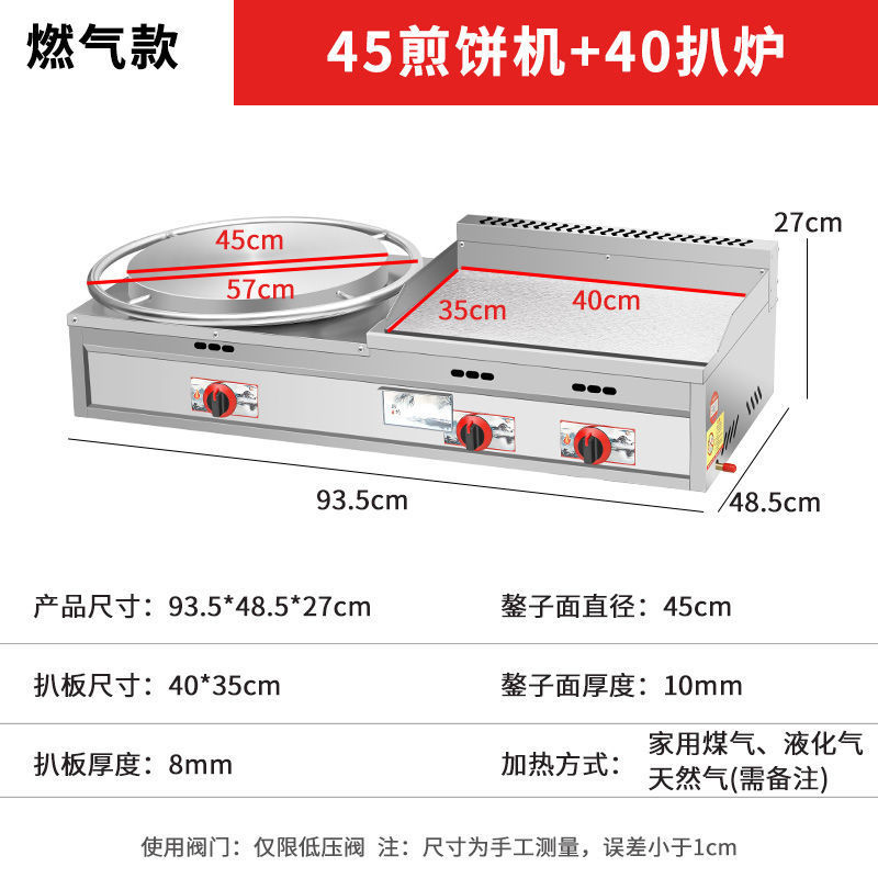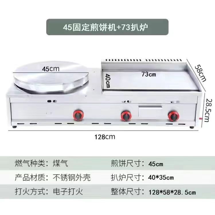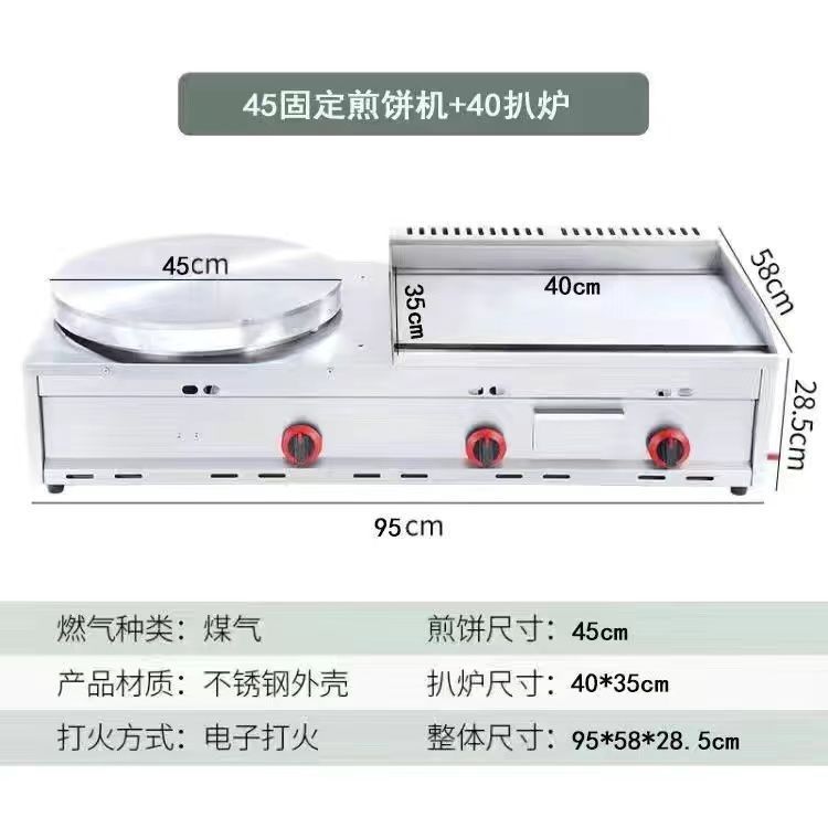 • 가스 모형 45cm 고정 팬케이크 기계 - 그릴 40개 + 국수 요리