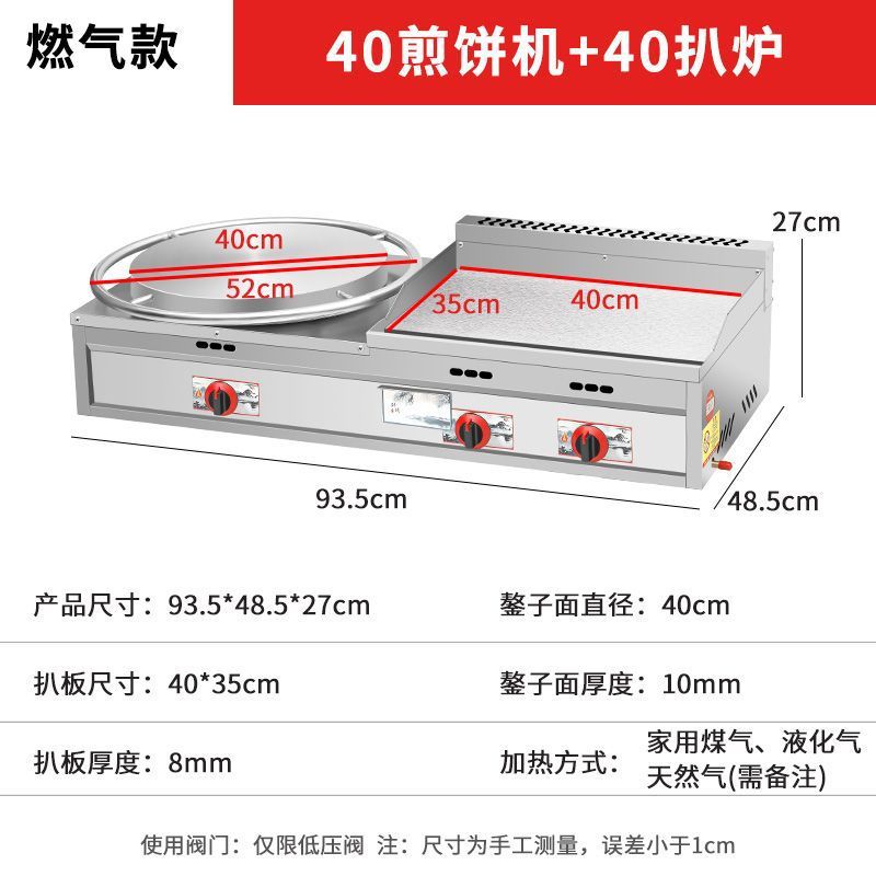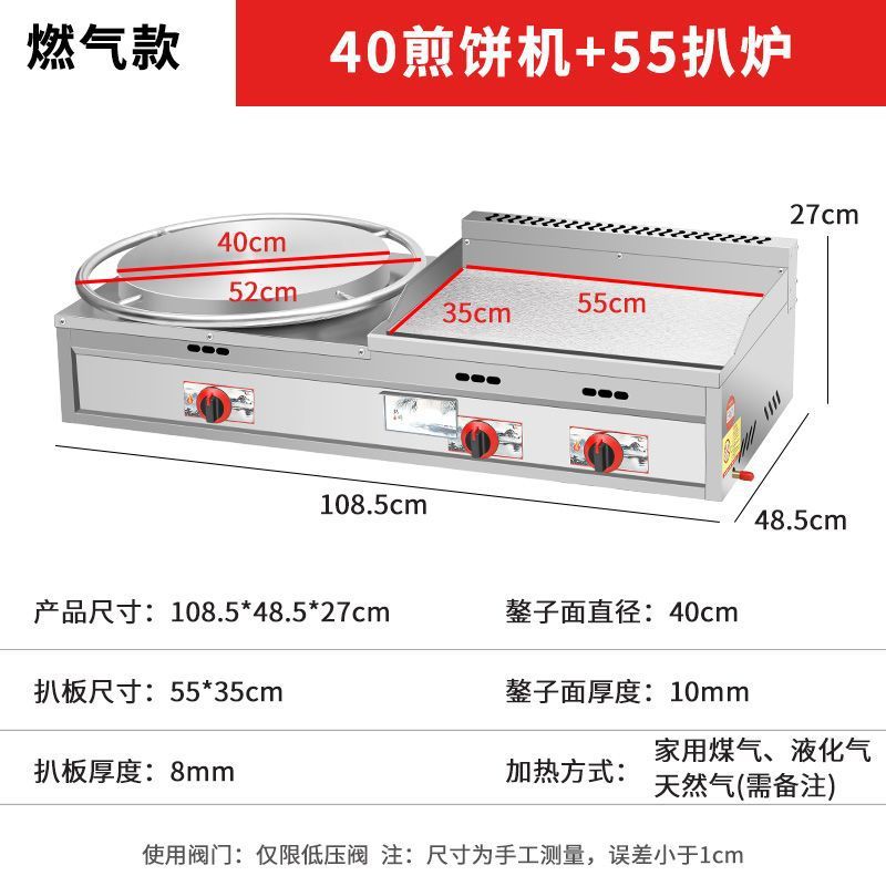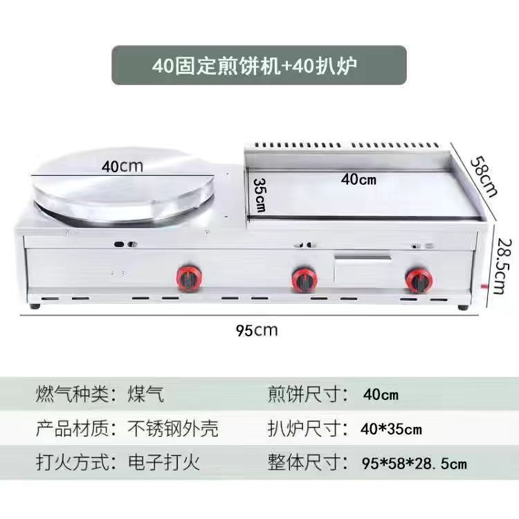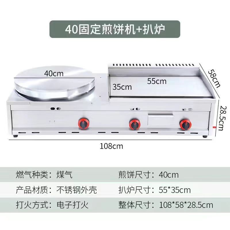 • 가스 모형 40cm 고정 팬케이크 기계 - 그릴 40개 + 국수 요리