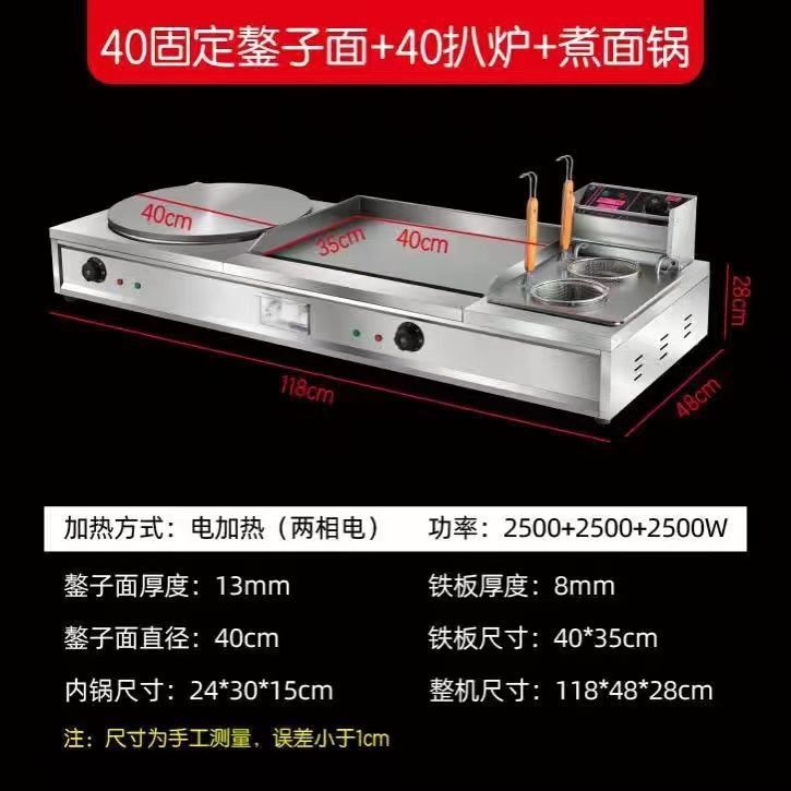 • 전기 40cm 고정 팬케이크 기계 - 그릴 40개 + 국수 요리