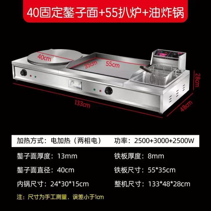 • 전기 40cm 고정 팬케이크 기계 - 그릴 40개 + 튀김 바구니