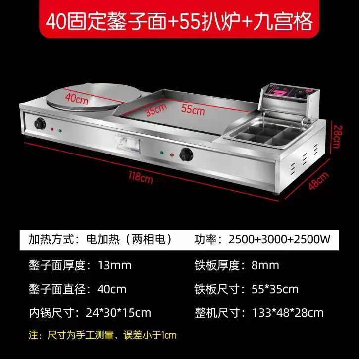 • 전기 45cm 고정 팬케이크 기계 - 그릴 40개 + 국수 요리