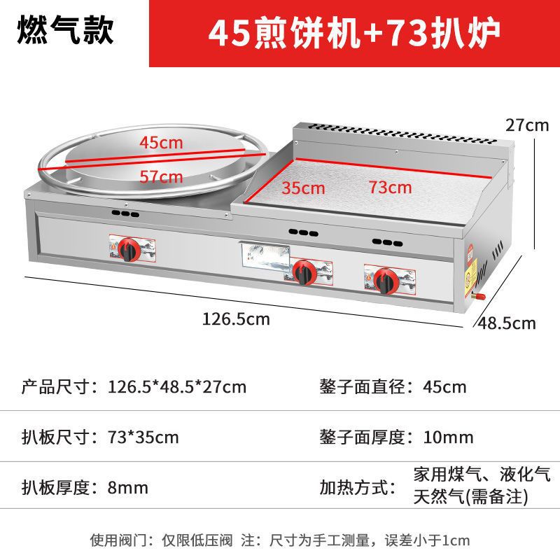• 가스 모형 45cm 고정 팬케이크 기계 -73 철판 + 지우공게