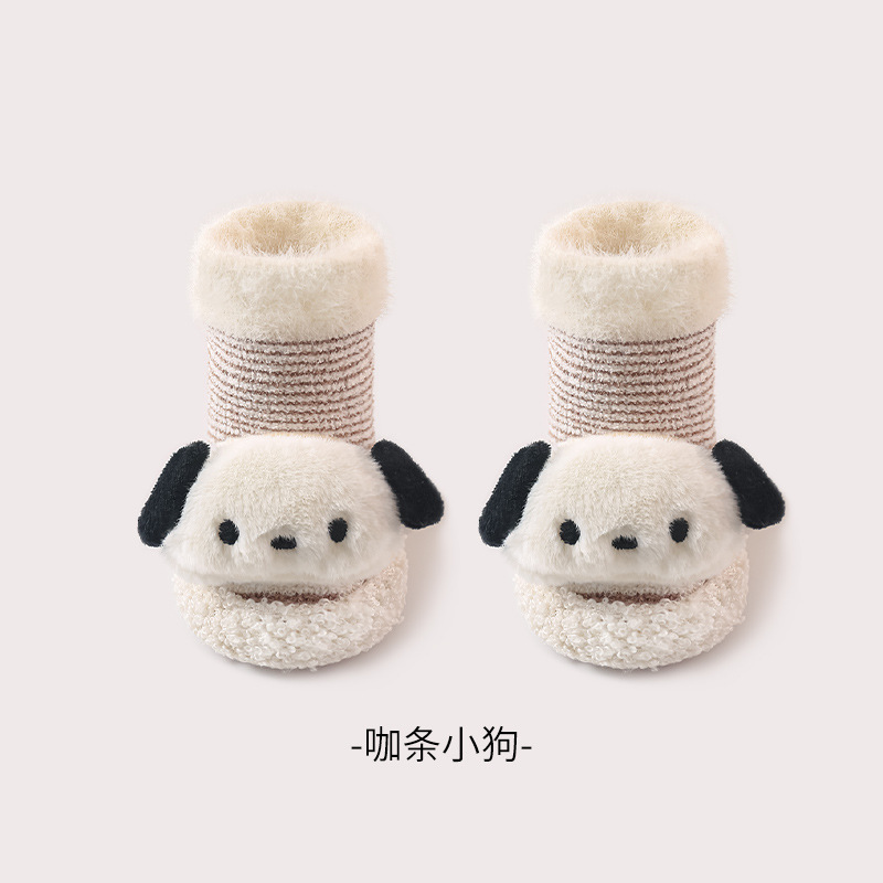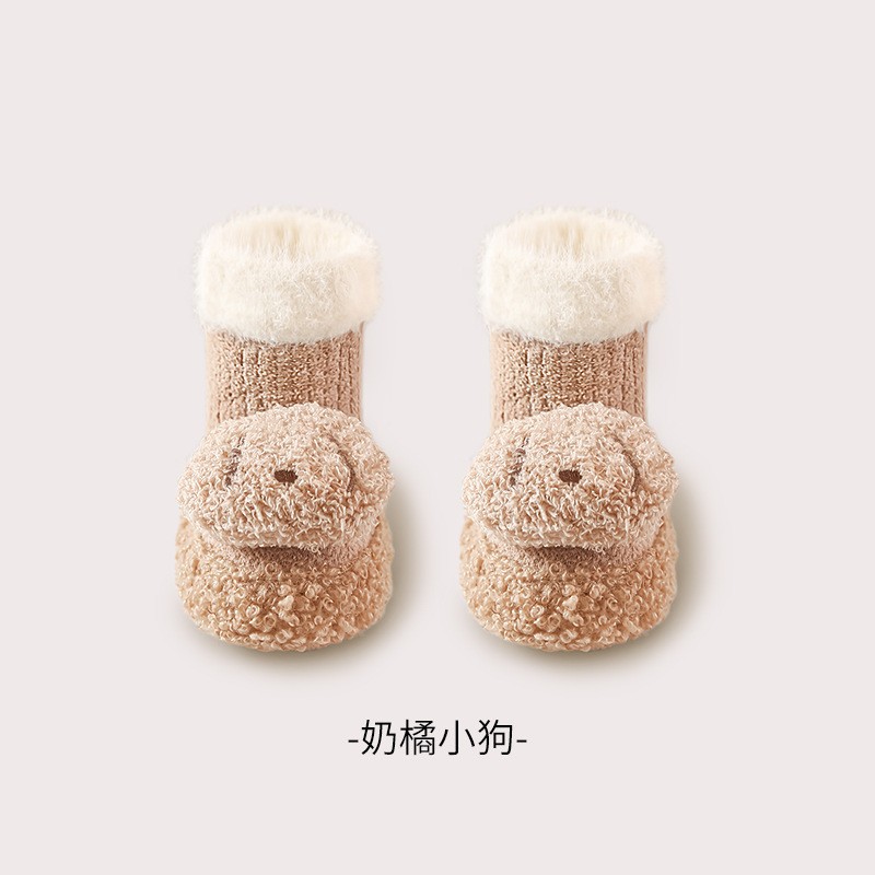 25 겨울용 두꺼운 아기 걸음마 양말, 따뜻한 중간 길이 바닥 신발 양말, 만화 캐릭터 유아 미끄럼 방지 걸음마 신발