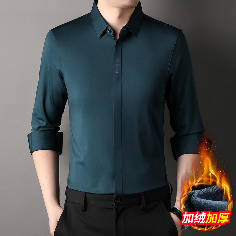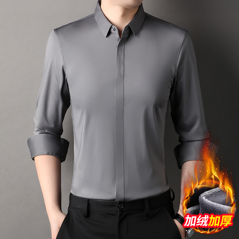 가을과 겨울 새로운 브랜드 기모 셔츠 남성용 다크 플래켓 두꺼운 원피스 벨벳 셔츠 따뜻한 카디건 솔리드 컬러 탑