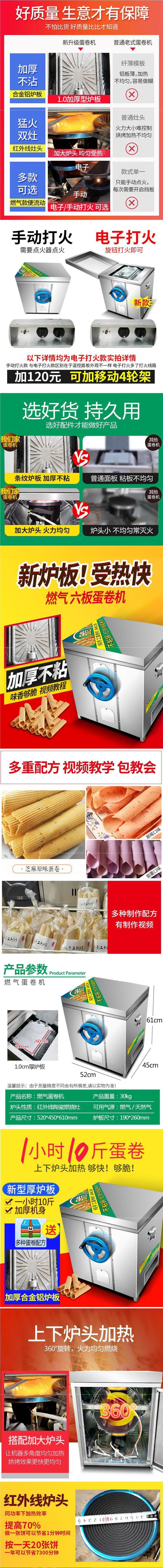 계란 롤 기계 가스 상업용 전자 점화 계란 롤 기계 바삭한 가죽 기계 6 면 두꺼운 연마 바삭한 가죽 계란 롤 기타스토어 가기