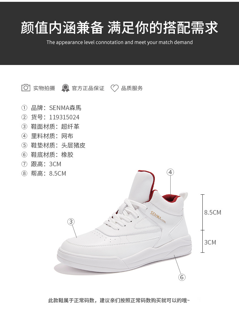 센마 2024 봄과 가을 남자 하이탑 한국 패션 캐주얼 스포츠 보드 신발 남자 학생 신발 올매치 트렌디 신발