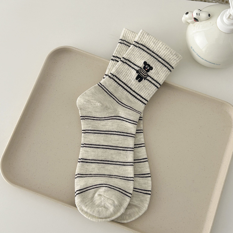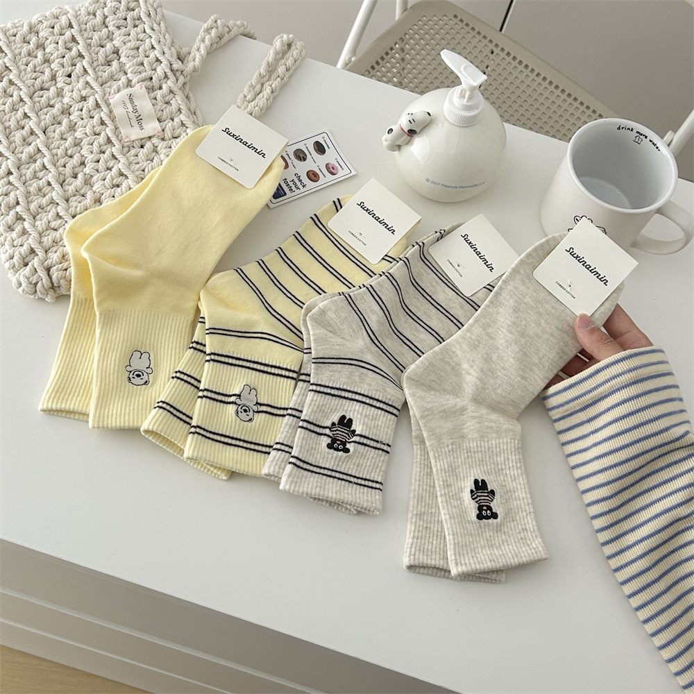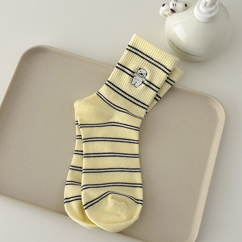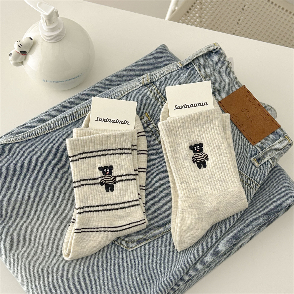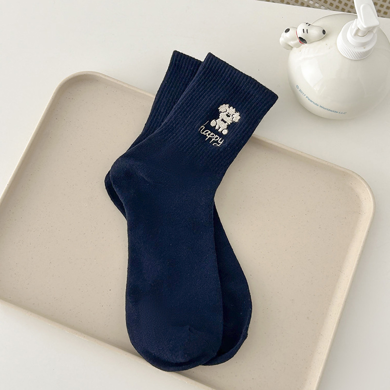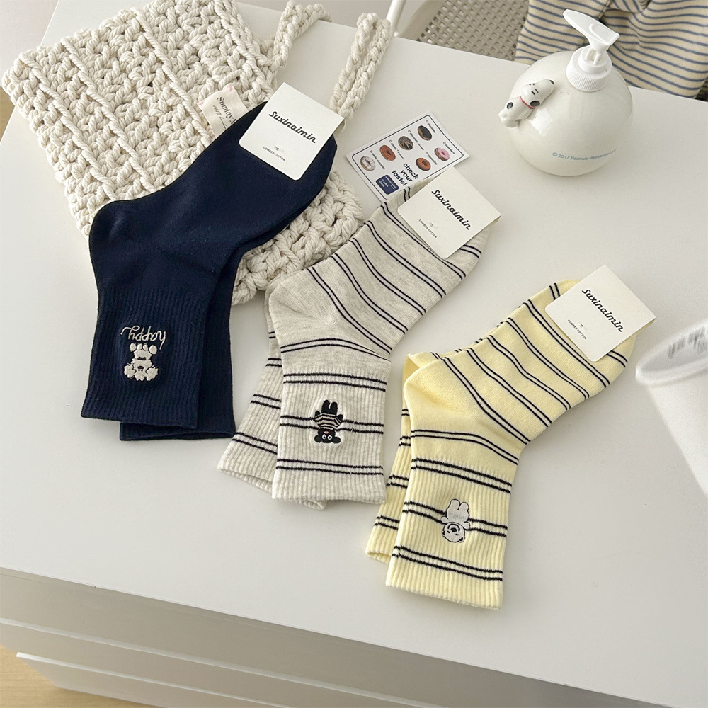 여성용 가을 신상 스트라이프 자수 만화 강아지 중목 양말 인스 트렌드 귀여운 일본식 컬리 양말스토어 가기