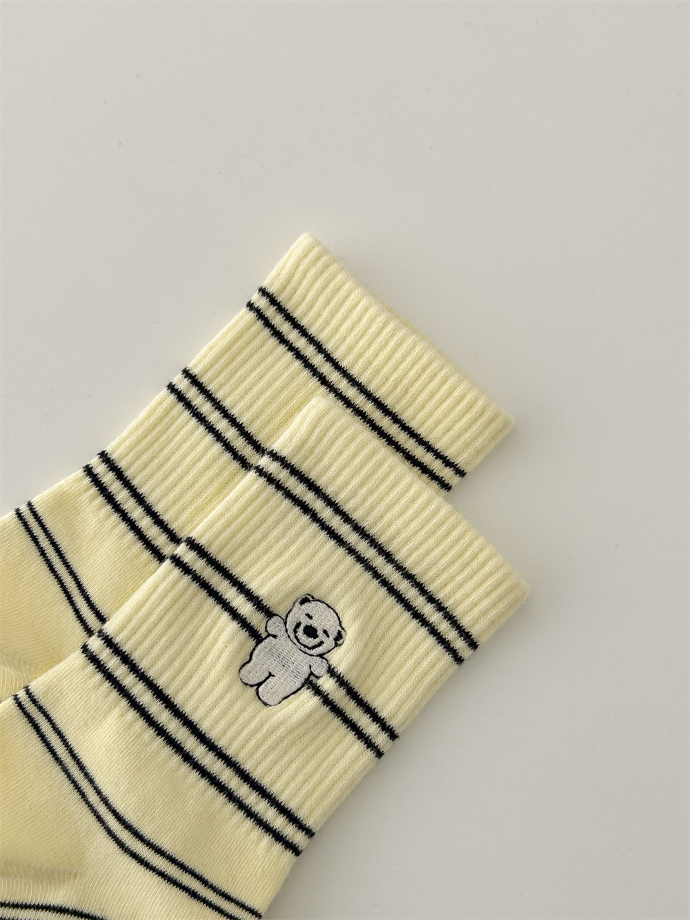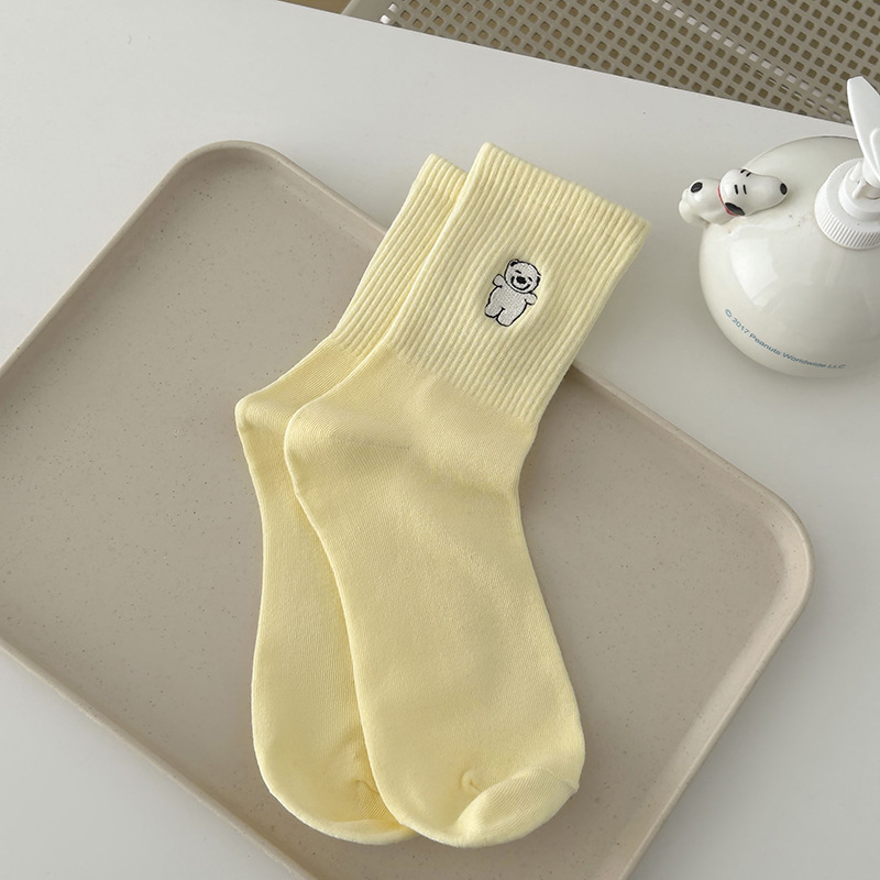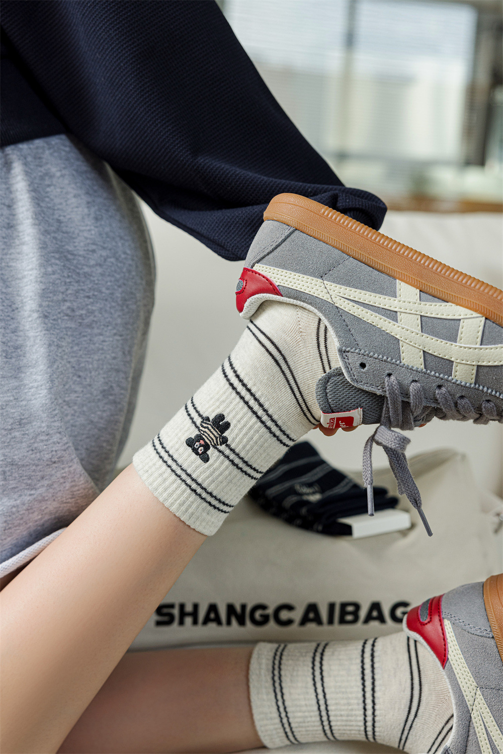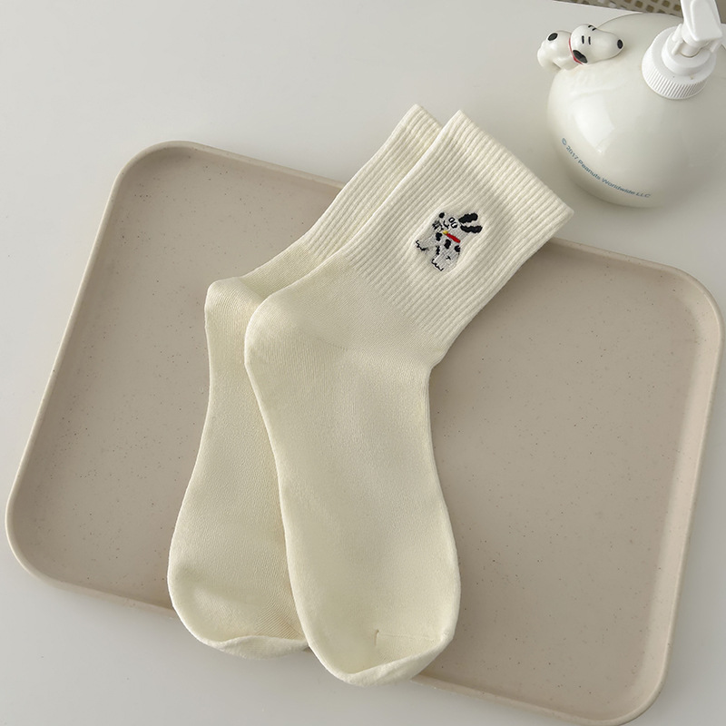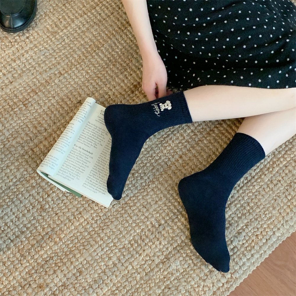 여성용 가을 신상 스트라이프 자수 만화 강아지 중목 양말 인스 트렌드 귀여운 일본식 컬리 양말스토어 가기