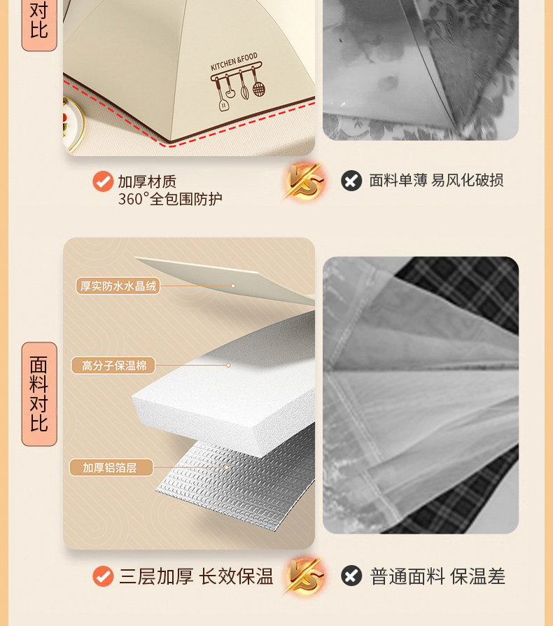 북유럽 겨울 열 보존 야채 커버 가정용 접이식 식탁 커버 주방 남은 음식 커버