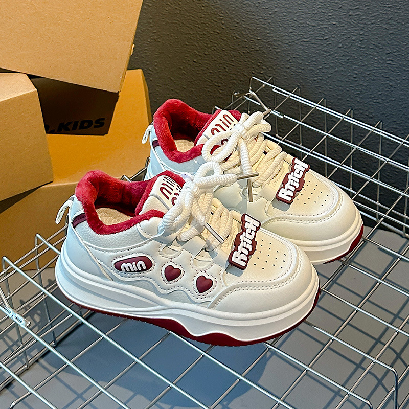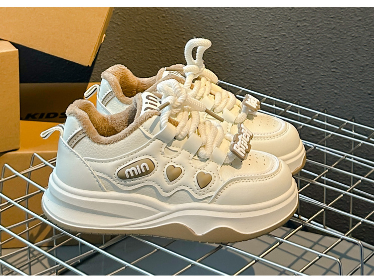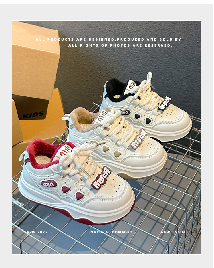 2024 가을과 겨울 새로운 어린이 신발 소년 소녀 따뜻한 부드러운 바닥 캐주얼 신발 스포츠 흰색 신발 소녀 기모 보드 신발스토어 가기
