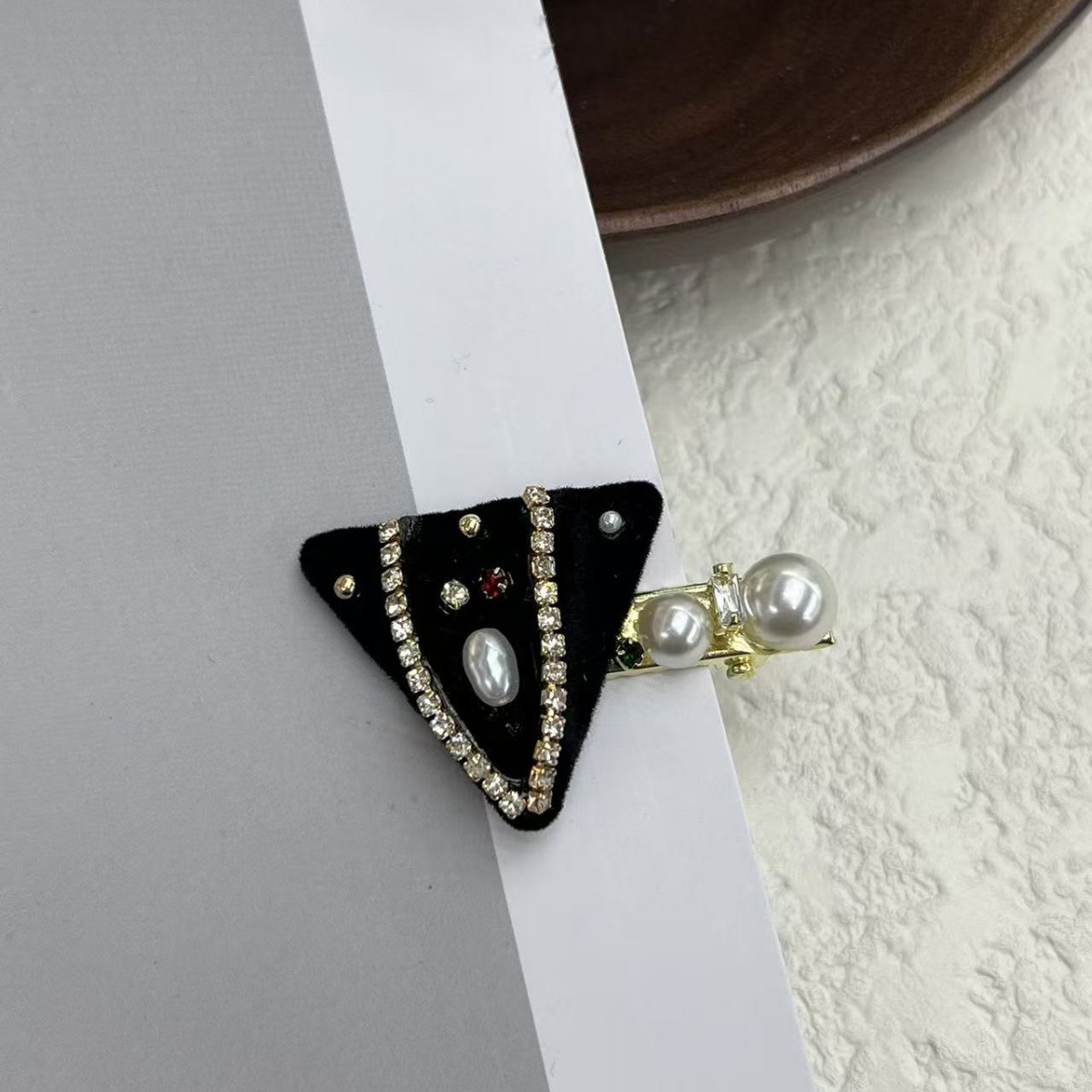 2024 새로운 패션 머리핀 높은 모조 다이아몬드 앞머리 가장자리 클립 진주 오리 클립