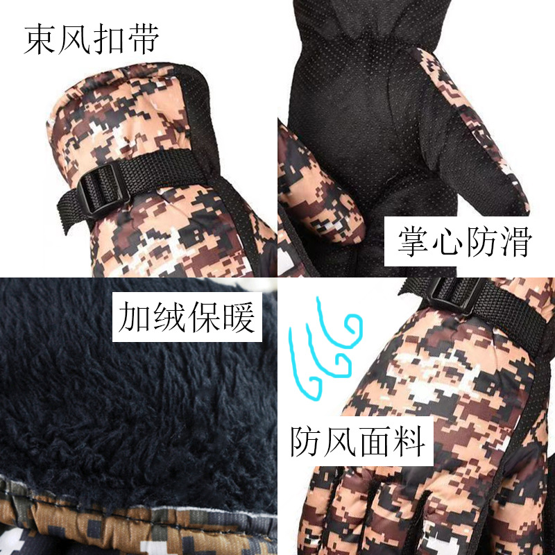 남성용 겨울 위장 장갑, 방풍 장갑, 방한 플러스 벨벳 따뜻한 장갑, 야외 오토바이 및 전기차 장갑