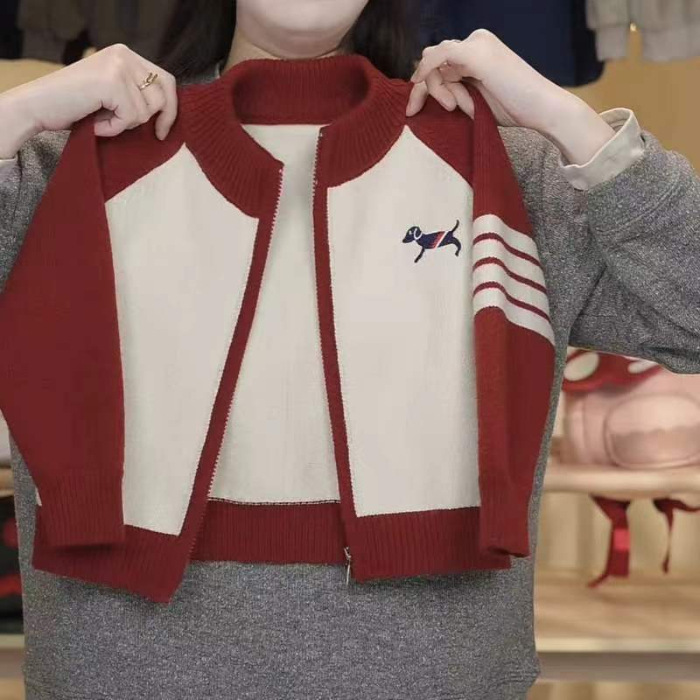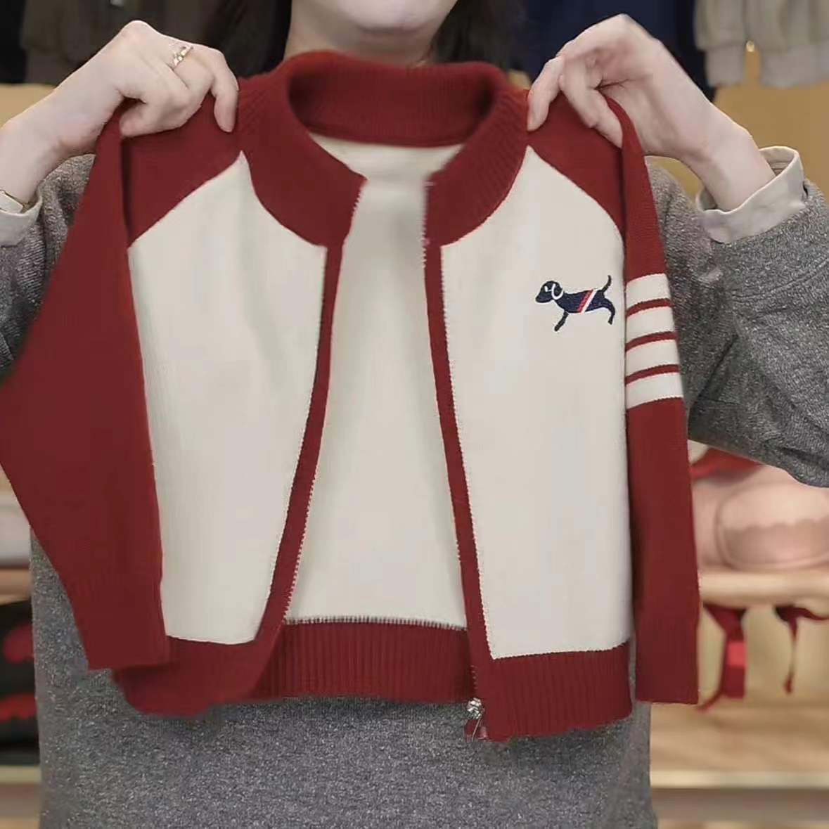 한국 소년 2024 가을 겨울 니트 지퍼 카디건 한국 자수 강아지 코트 스웨터 캐주얼 올 매치 탑스토어 가기