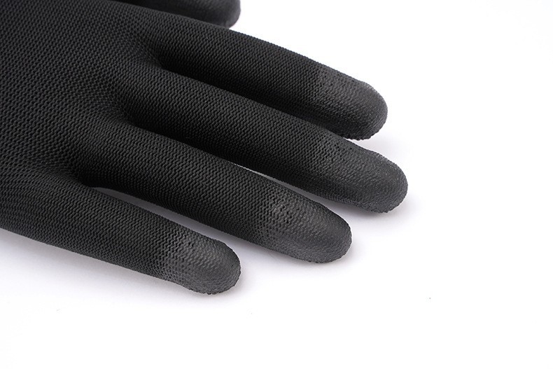 • 13게이지 나일론 PU 코팅 손가락 장갑 검정색