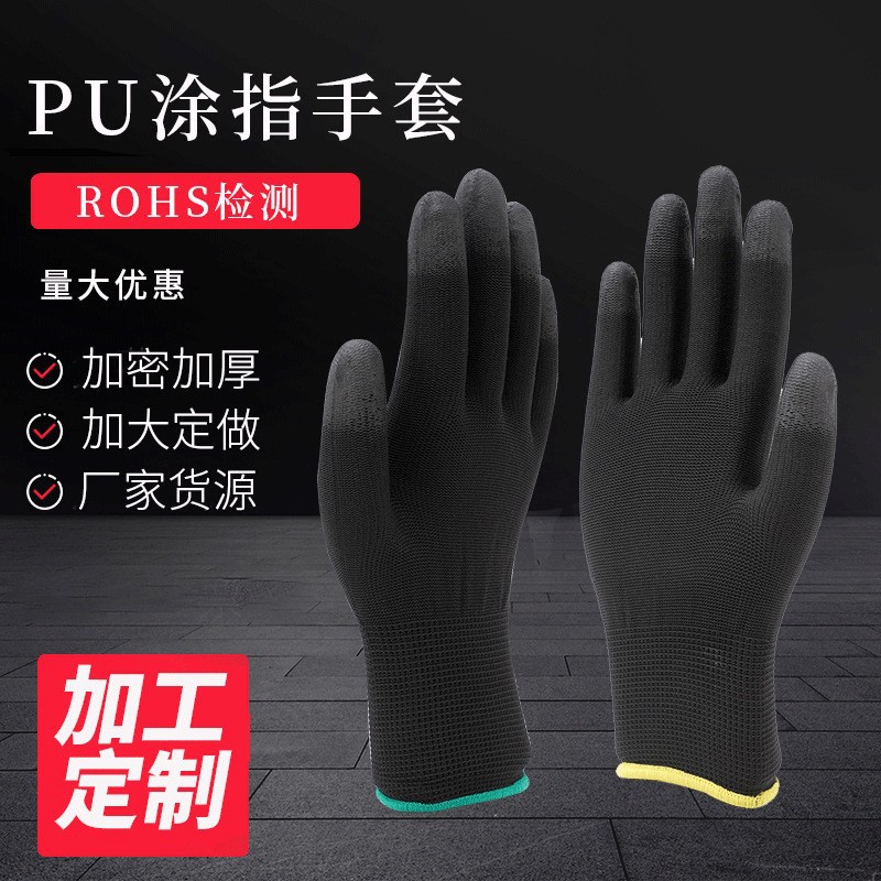 검정색 PU 코팅 정전기 방지 장갑, 내마모성, 미끄럼 방지 나일론 코팅 노동용 얇은 통기성 장갑 LM39스토어 가기
