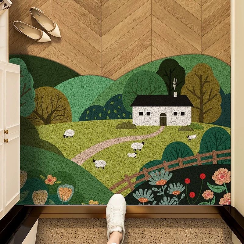 작은 신선한 출입문 매트 더러운 저항하는 특수 모양의 가구 출입문 미끄럼 방지 매트 긁기 진흙 및 문지르는 토양 실크 반지 매트 좋은 관리