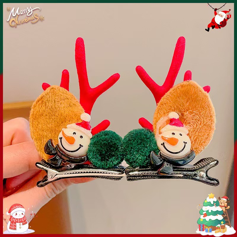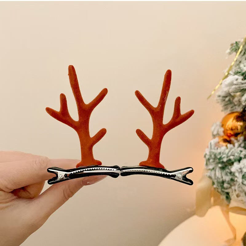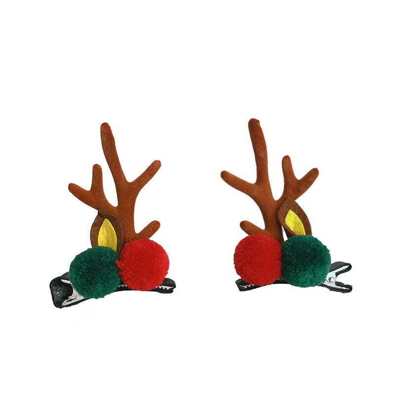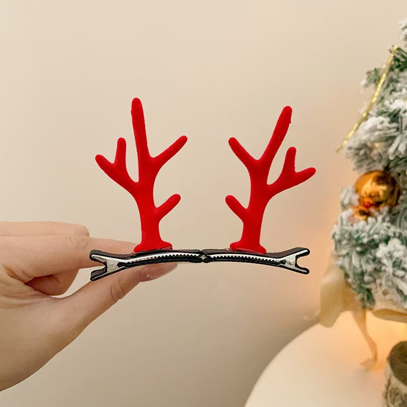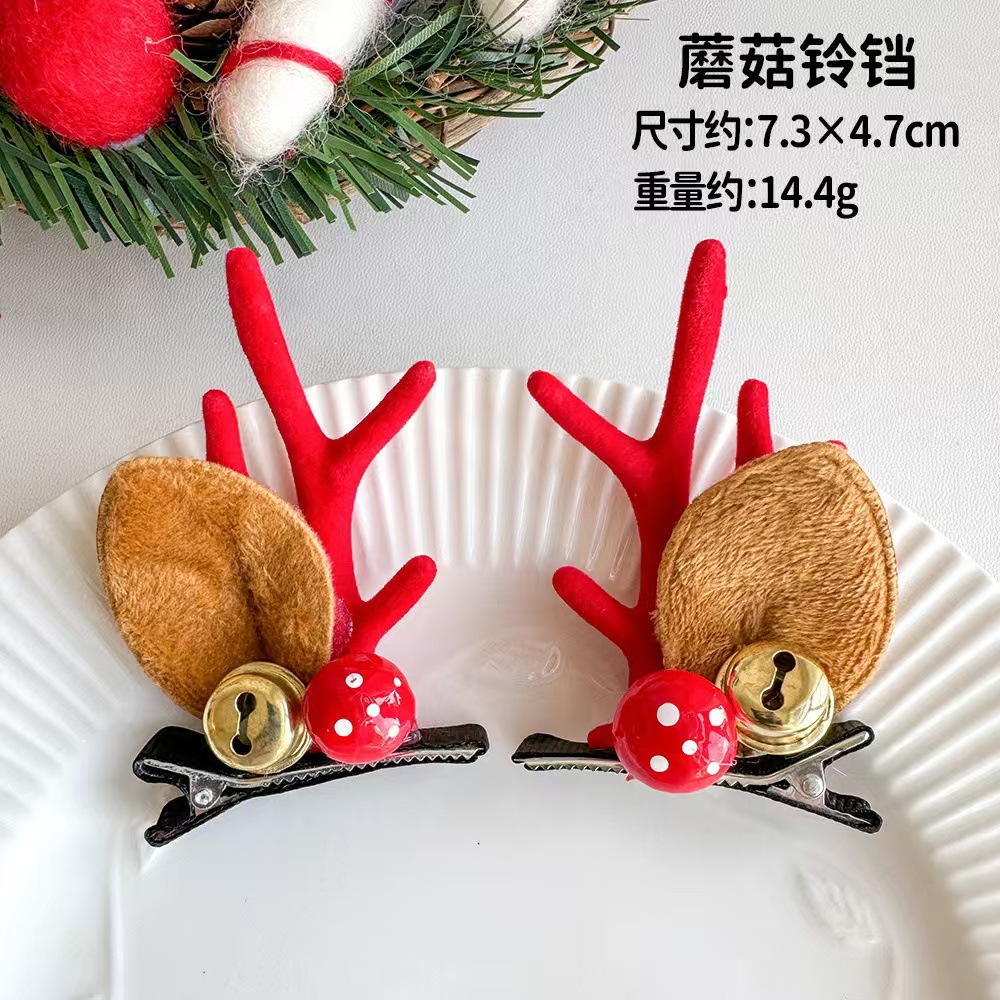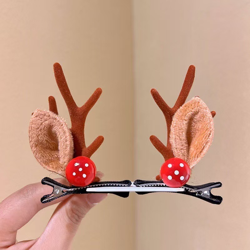 크리스마스 뿔 머리핀 크리스마스 헤어 액세서리 어린이 귀여운 클립 온라인 빨간 만화 엘크 머리핀 헤어 액세서리 여성 도매